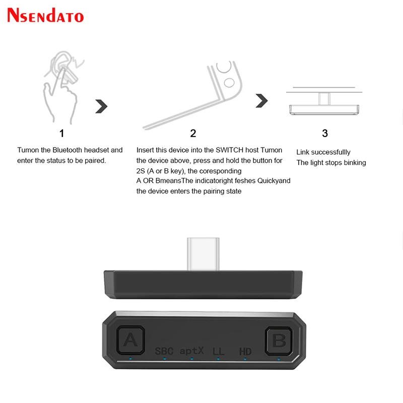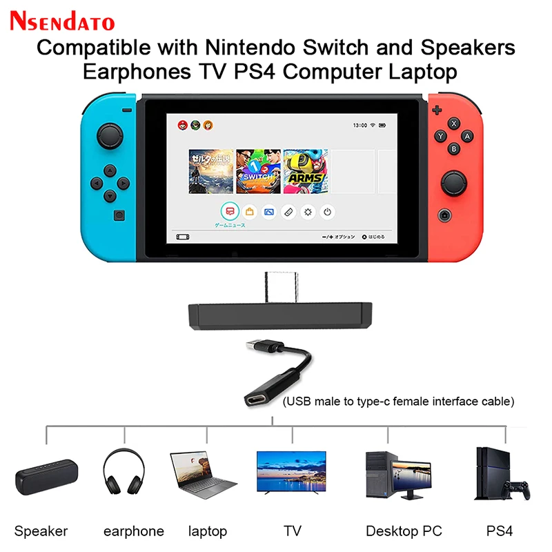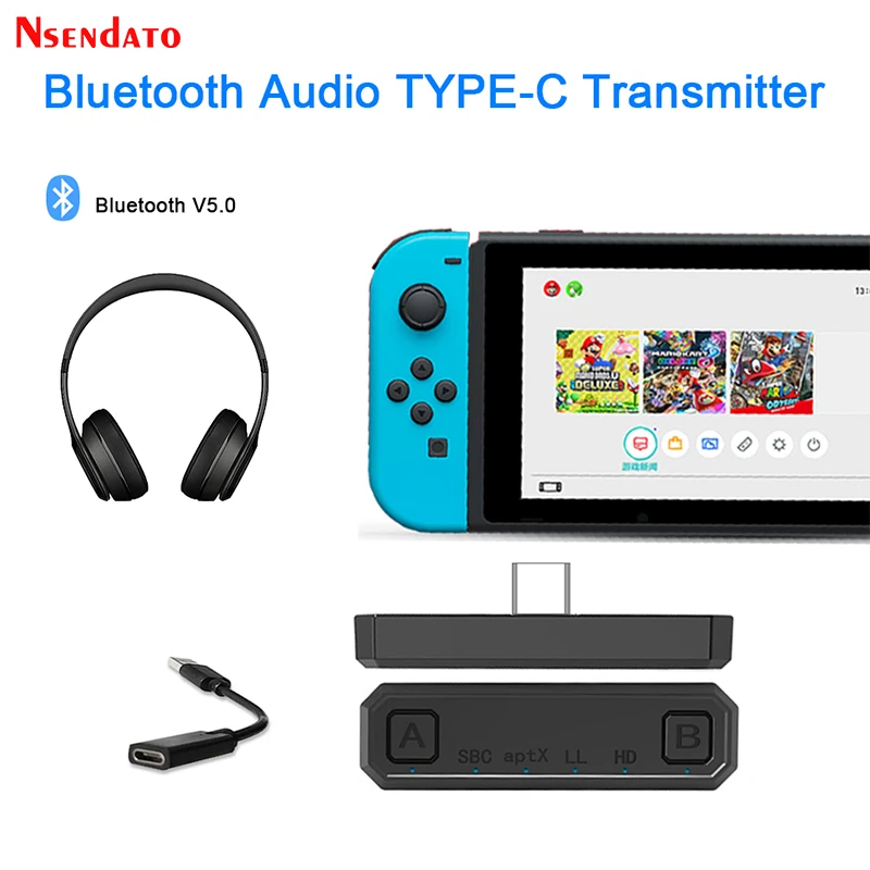 Comprar Adaptador inalámbrico de Audio y música con Bluetooth 5,0, Dongle transmisor tipo C para Nintendo Switch Lite, PS4, PC, APTX LL HD