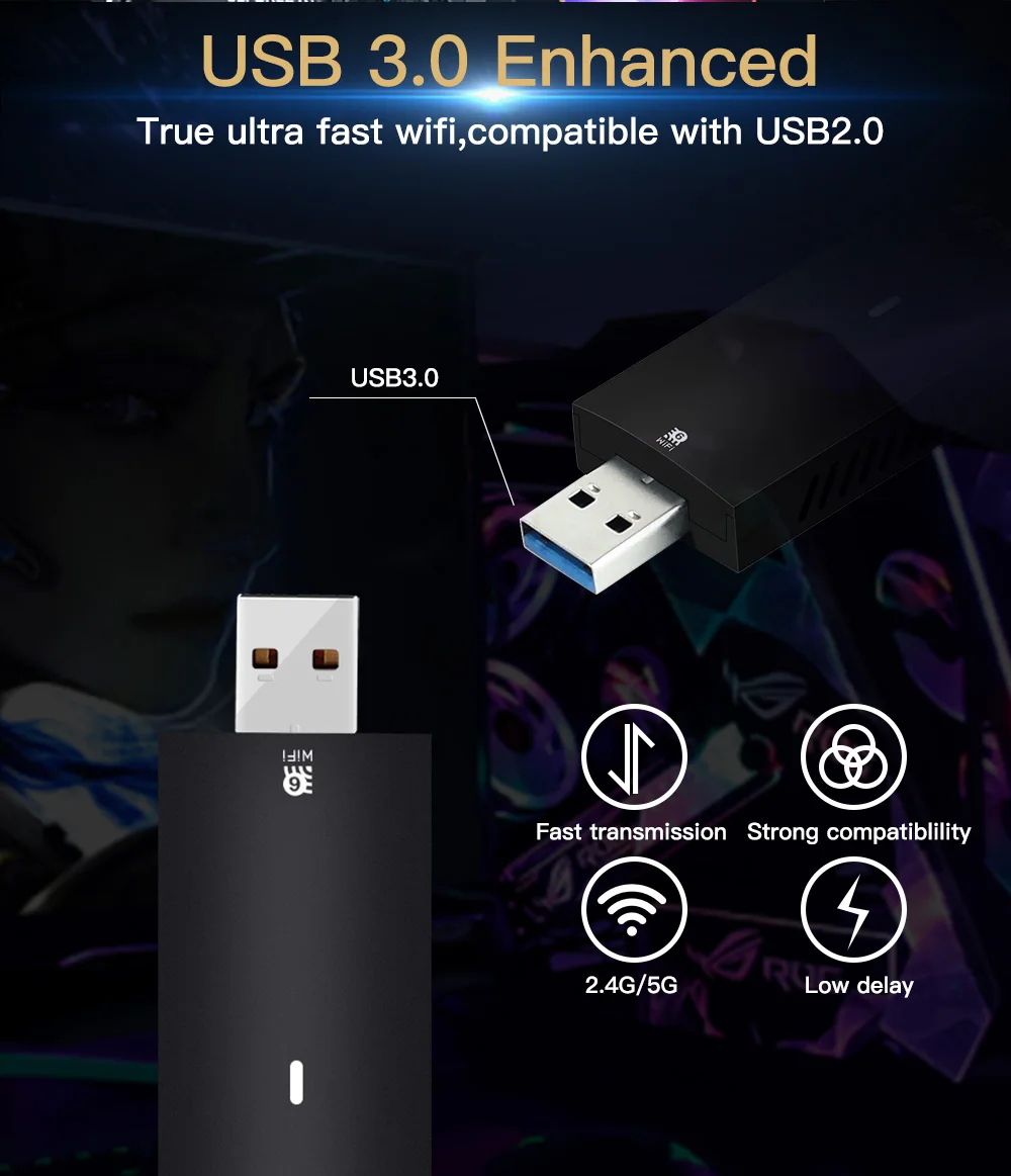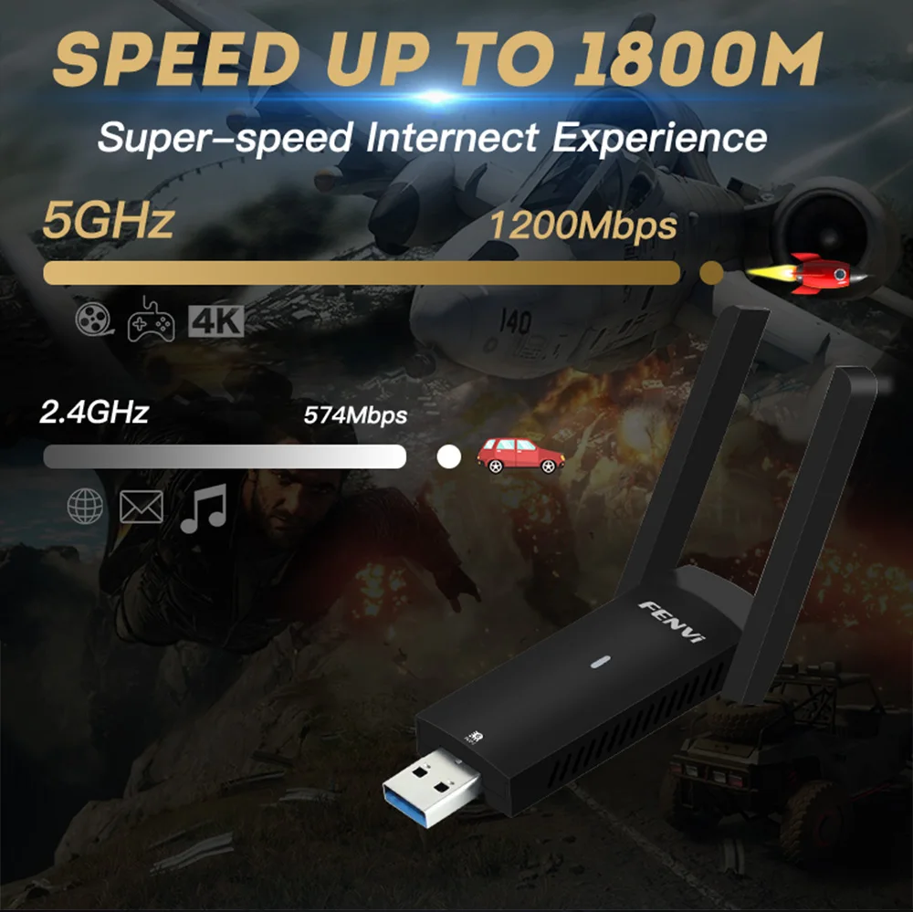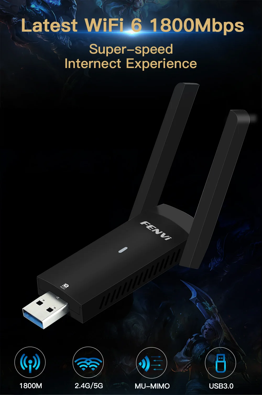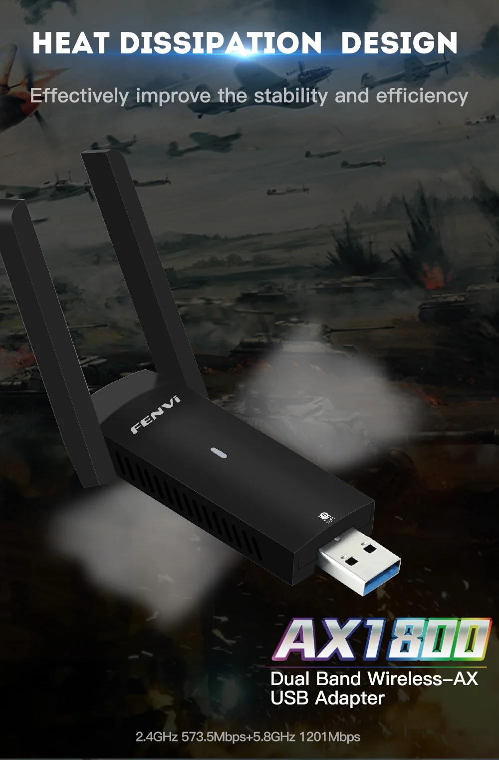 Comprar Adaptador inalámbrico AX1800, tarjeta de red Lan, WiFi 6, USB 3,0, 1800Mbps, Dongle de doble banda 2,4G/5GHz para ordenador portátil/PC Windows 7/10/11