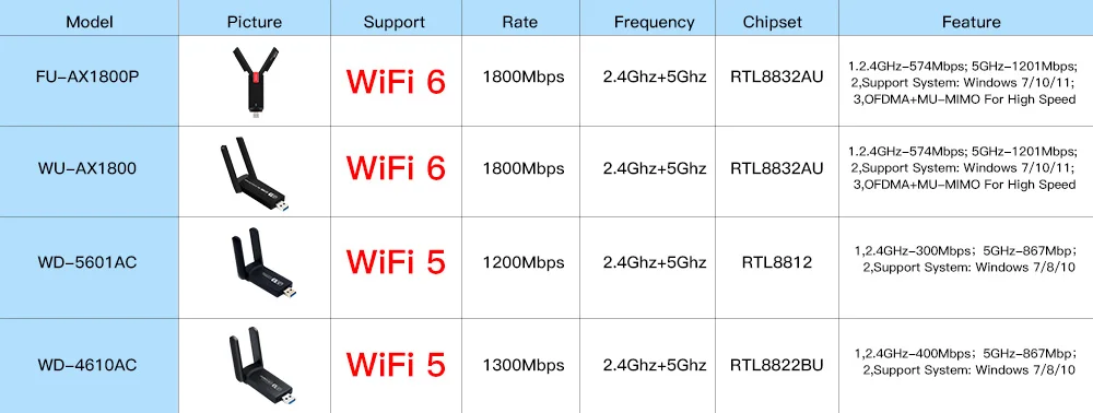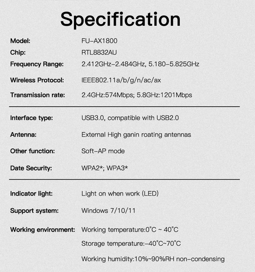 Wi-Fi 6 USB 3,0 Adaptador inalámbrico de 1800Mbps AX1800 Tarjeta de red Lan WiFi Dongle Banda dual 2,4G/5GHz para computadora portátil/PC Windows 7/10/11