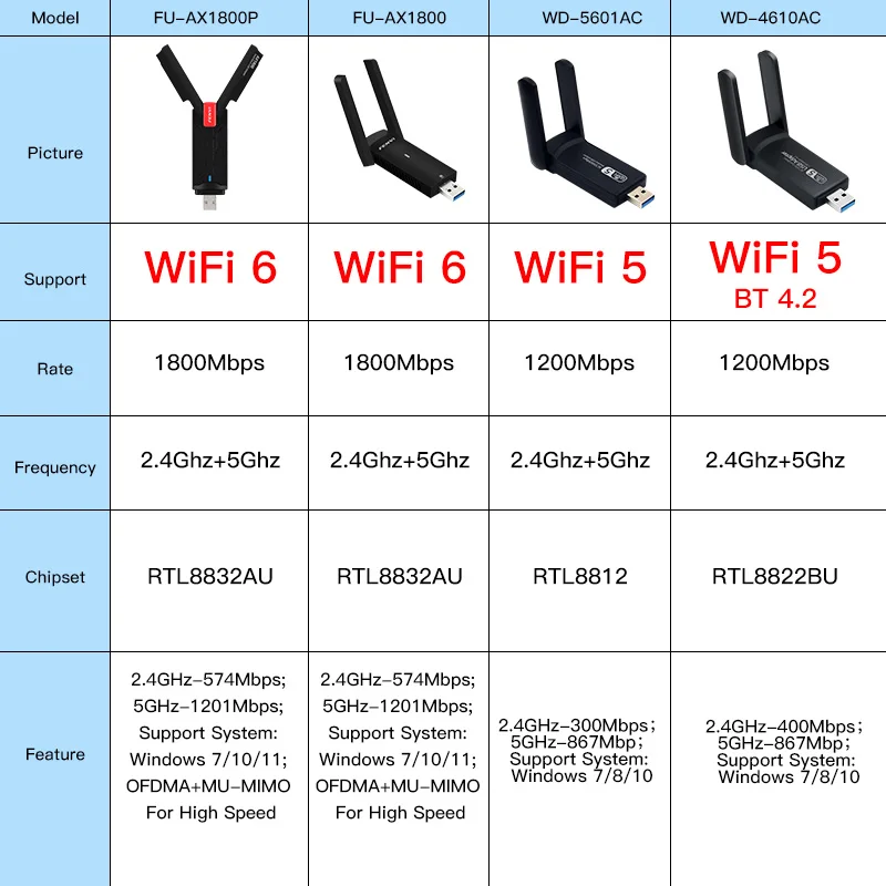 Wi-Fi 6 USB 3,0 Adaptador inalámbrico de 1800Mbps AX1800 Tarjeta de red Lan WiFi Dongle Banda dual 2,4G/5GHz para computadora portátil/PC Windows 7/10/11