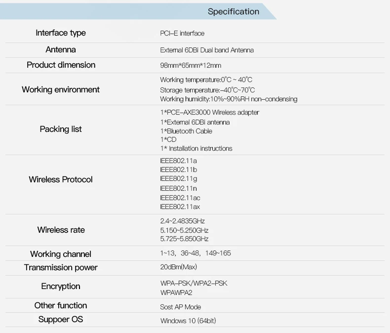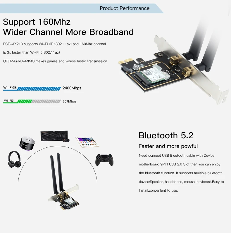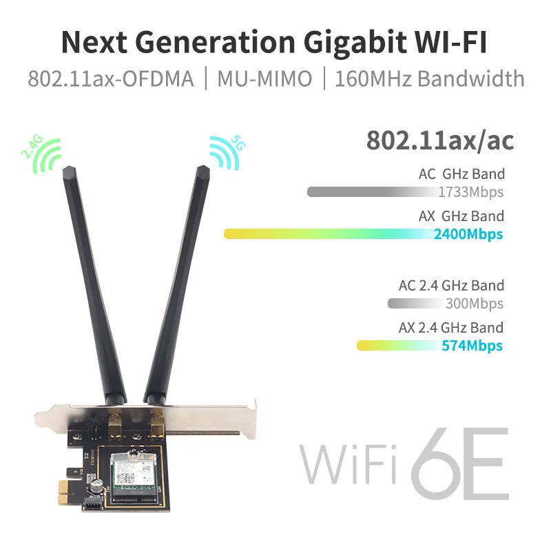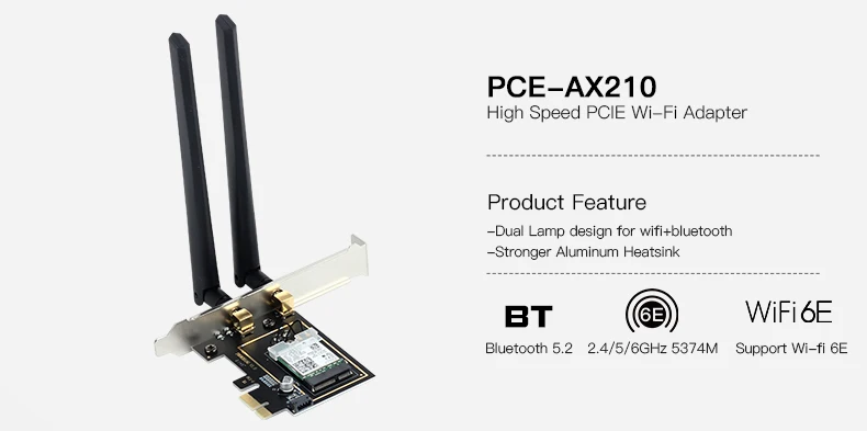 Tipo: tarjeta de red PCIE Wi-Fi 6E con Blue-tooth 5,2