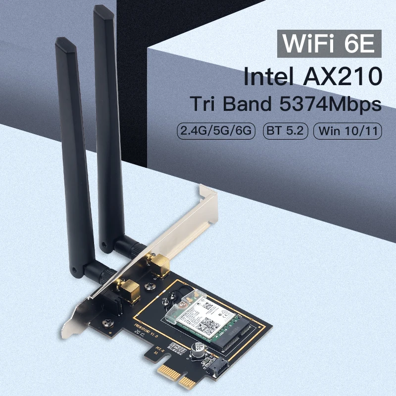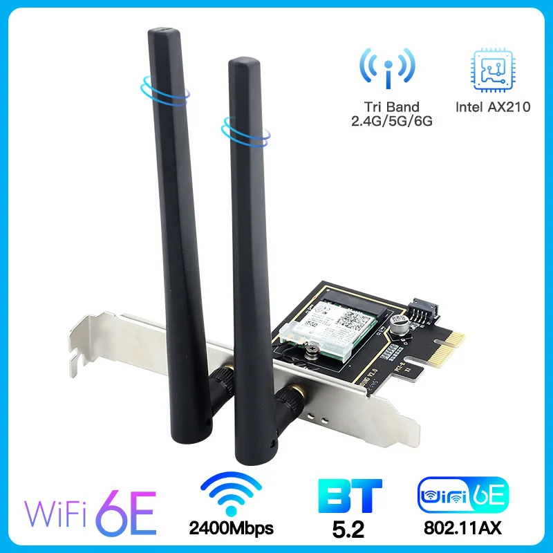 Comprar Adaptador inalámbrico AX210 WiFi 6E Intel AXE3000 PCI, Bluetooth 5,2, tarjeta WiFi de Triple banda 2,4G/5G/6Ghz para Win10/Win 11 para PC
