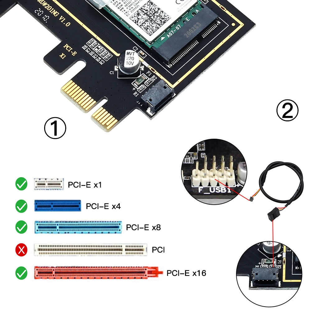 Interfaz: PCI-E/X1/X4/X8/X16; usb de 9 pines para Bluebooth
