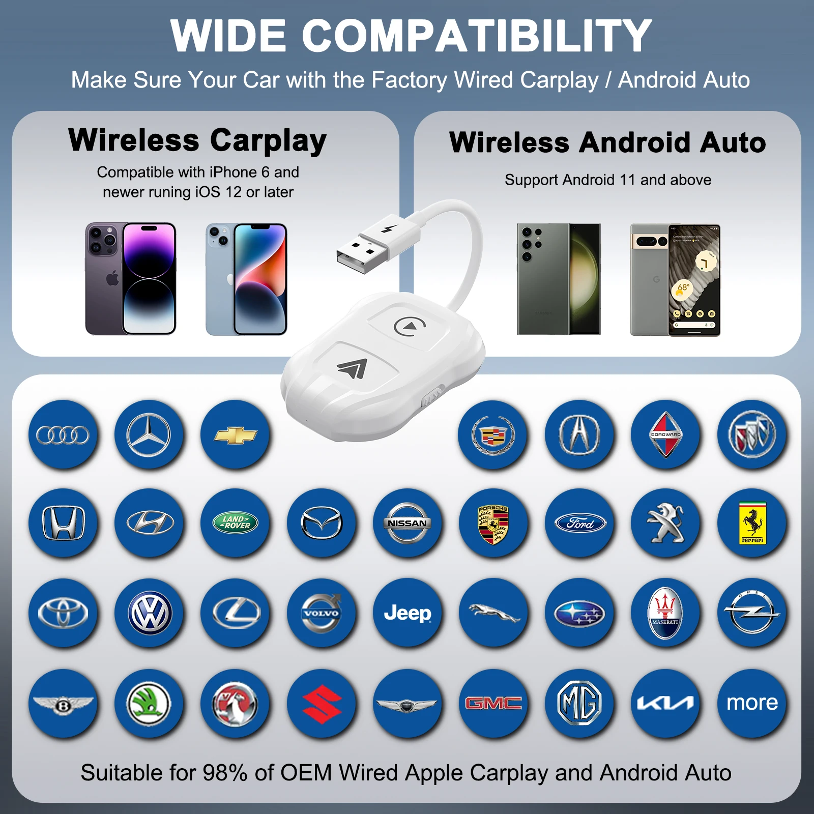 2-IN-1 Wireless CarPlay automático y adaptador inalámbrico Android