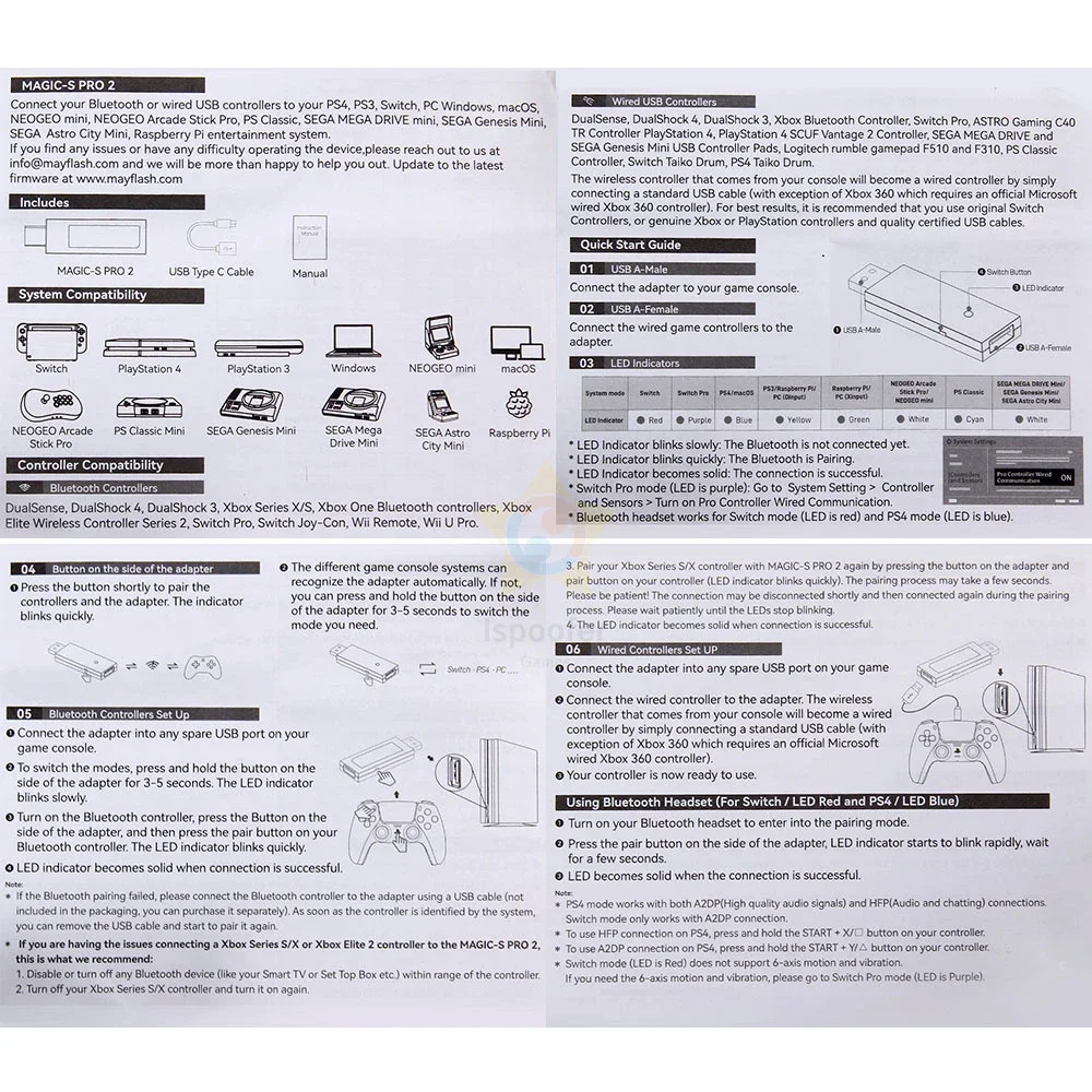 Mayflash Magic S Pro 2 Adaptador inalámbrico para PS4/PS3/Xbox Series X Controlador Adaptador Convertidor a Nintendo Switch/NEOGEO MINI
