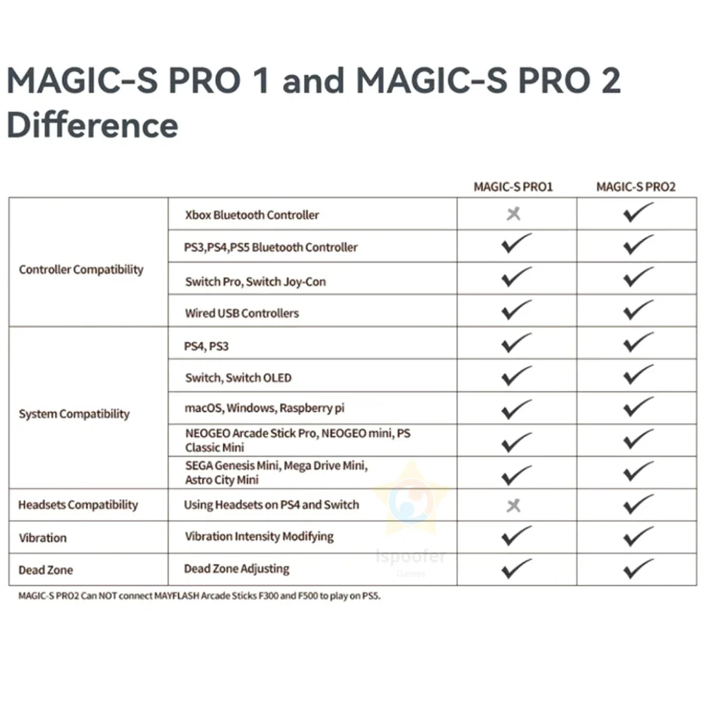 Nota: MAGIC-S PRO 2 No se puede conectar MAYFLASH ArcadeSticks FC300 y FC500 para jugar en PS5.(Es por eso que el precio de 1 generación es superior a la 2.a generación.)
