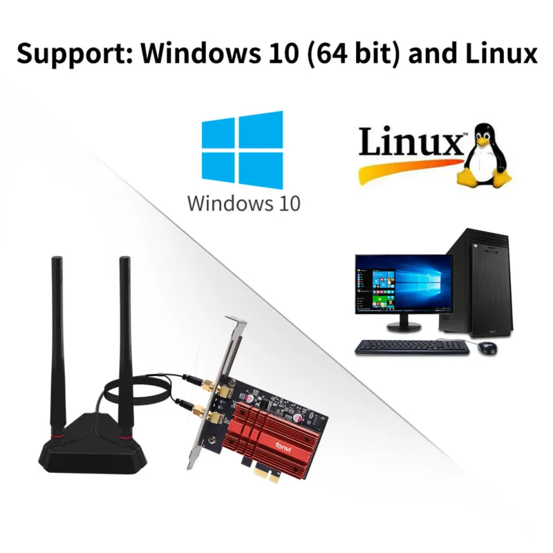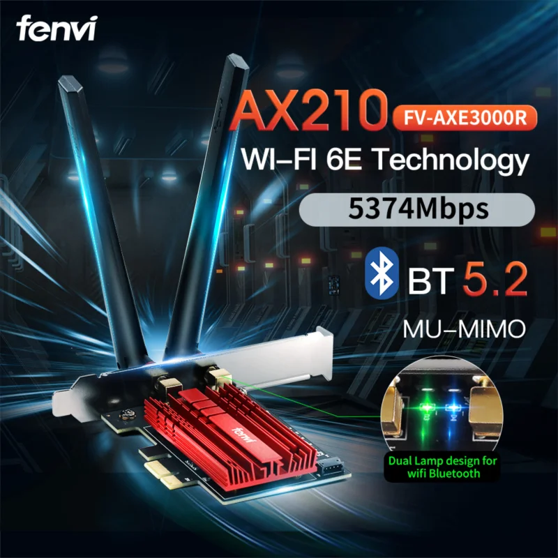 Comprar Adaptador inalámbrico pci-express, WiFi 6E FV-AXE3000, Bluetooth 5,3, Intel AX210, 2,4G/5G/6Ghz, 5374Mbps, 802.11AX, tarjeta de red WiFi Win10
