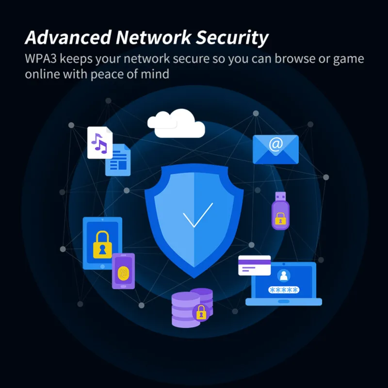 Banda dual 2,4 Ghz-300Mbps/5Ghz-2400Mbps/6Ghz-2400Mbps;