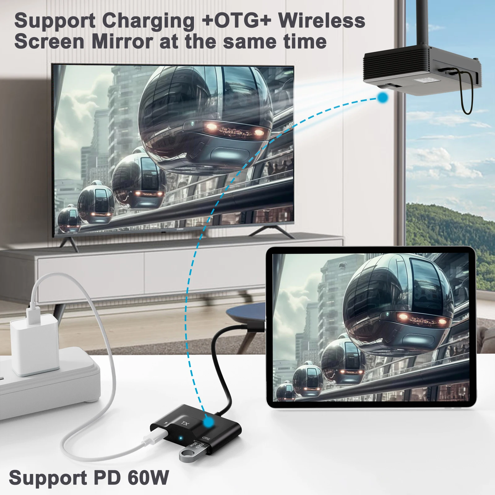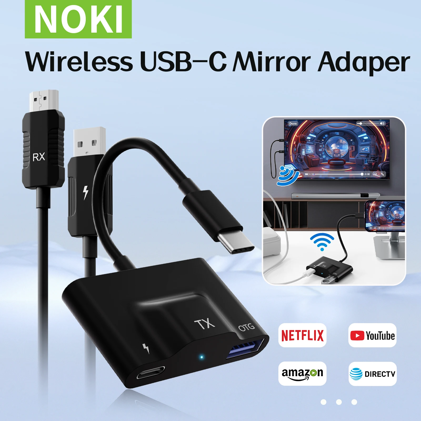 Comprar Adaptador inalámbrico de transmisor y receptor USB C a HDMI, extensor de adaptador de pantalla inalámbrica para transmisión de vídeo/áudio a TV/proyector