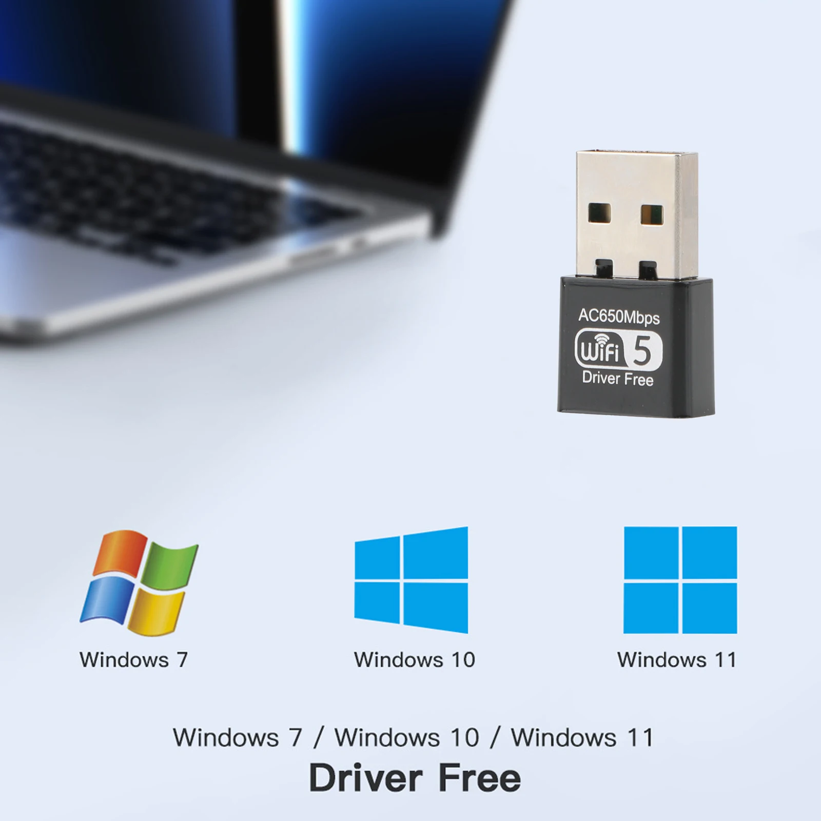 Tarjeta de red inalámbrica de 1x650M, adaptador USB WiFi5 sin controlador, transmisor receptor de señal WiFi inalámbrico, adecuado para PC y portátil