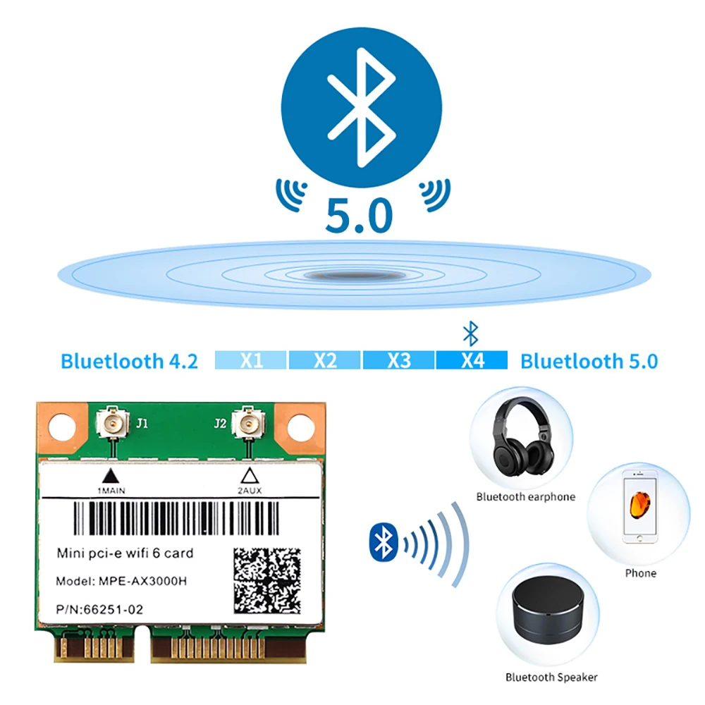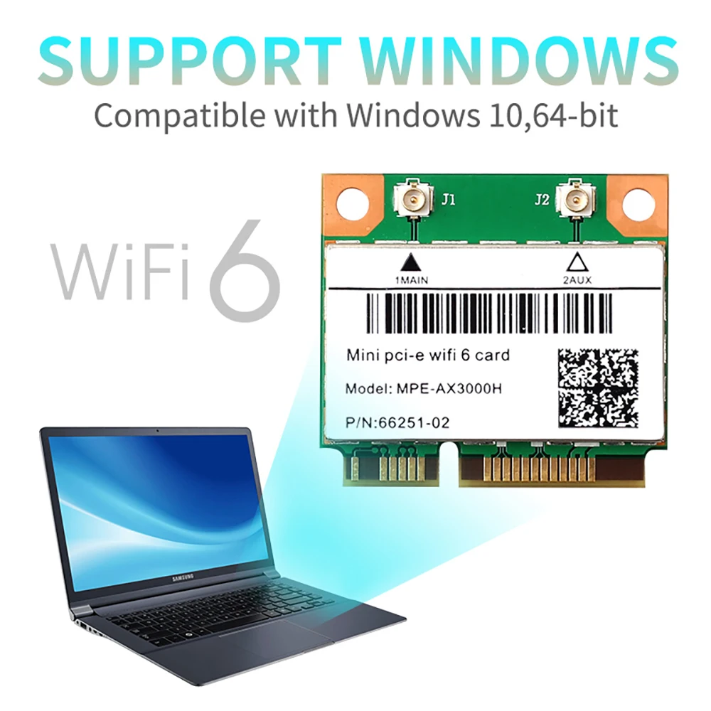 Comprar Adaptador inalámbrico WiFi6 MPE-AX3000H, Mini PCI-E de 2974Mbps, para tarjeta Wifi Bluetooth 5,2, 802.11ax, 2,4G/5G/6Ghz, Wlan, WiFi, 6E, AX210