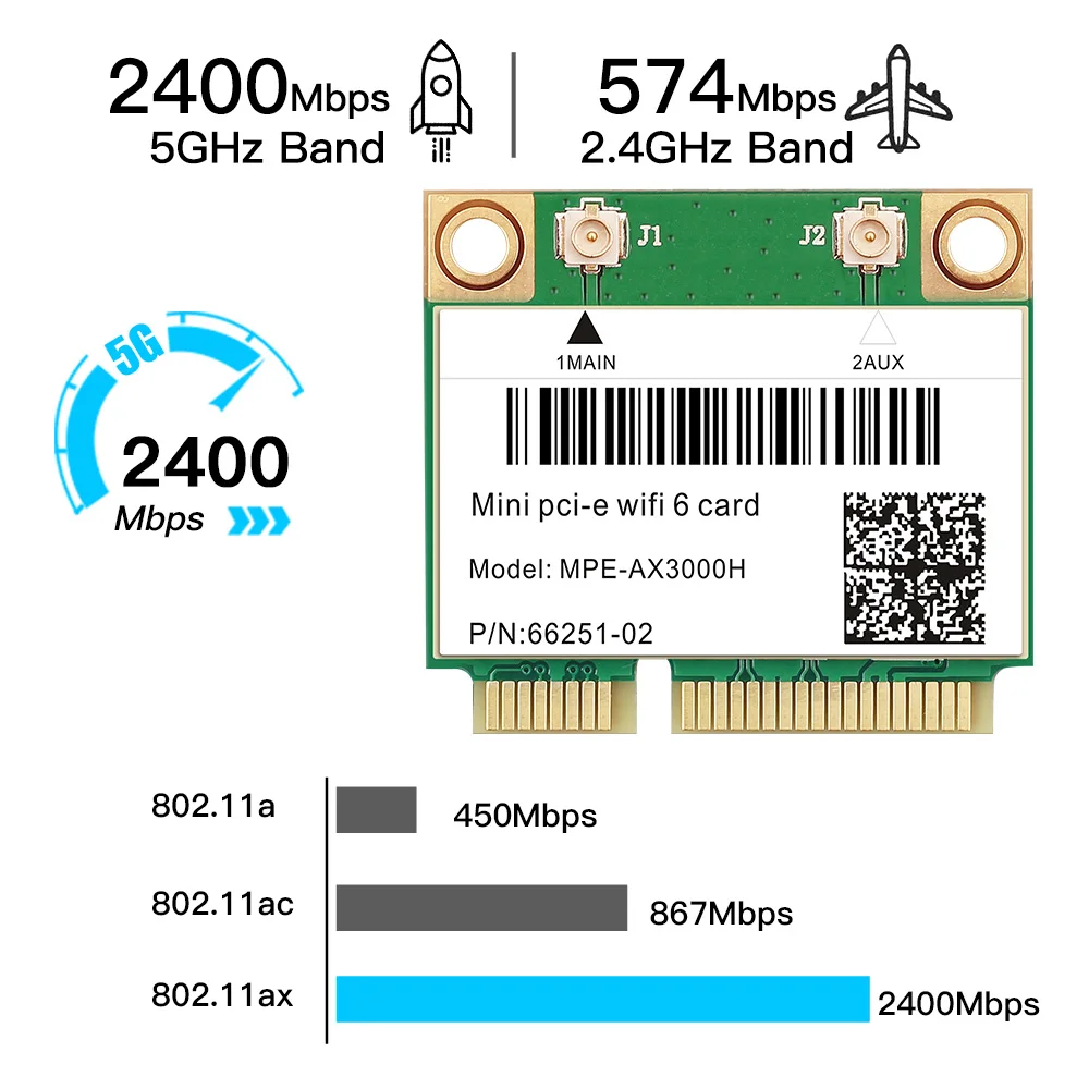 Comprar Adaptador inalámbrico WiFi6 MPE-AX3000H, Mini PCI-E de 2974Mbps, para tarjeta Wifi Bluetooth 5,2, 802.11ax, 2,4G/5G/6Ghz, Wlan, WiFi, 6E, AX210