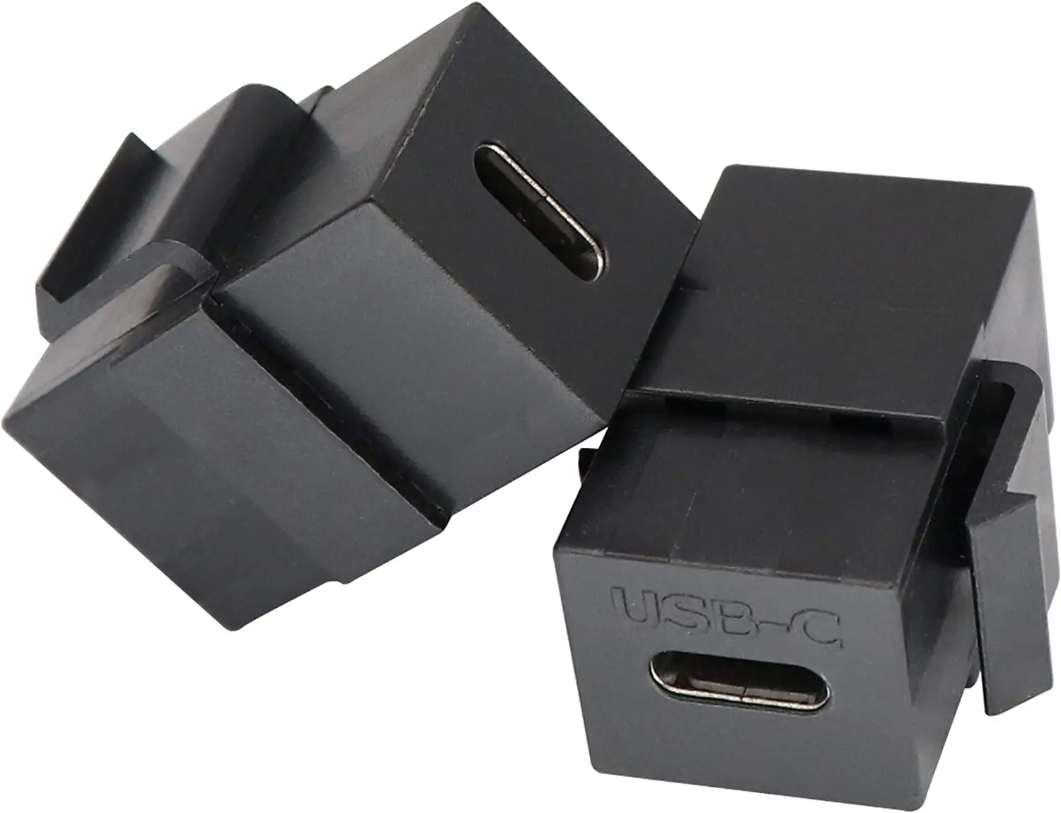 El inserto trapezoidal USB 3.1 tipo C conecta dos ejes de cable USB tipo C; La llave trapezoidal USB tipo C 3.1 se adapta a una apertura estándar en un panel de conexión o placa de pared para conectores trapezoidales.