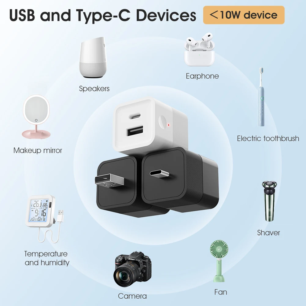2. Compatibilidad con múltiples dispositivos:El enchufe del cargador del adaptador de corriente es adecuado para varios dispositivos, como tiras LED, humidificadores, altavoces de escritorio y ventiladores pequeños de menos de 10W. Con opciones USB/Tipo-C, satisface sus diversas necesidades de energía.