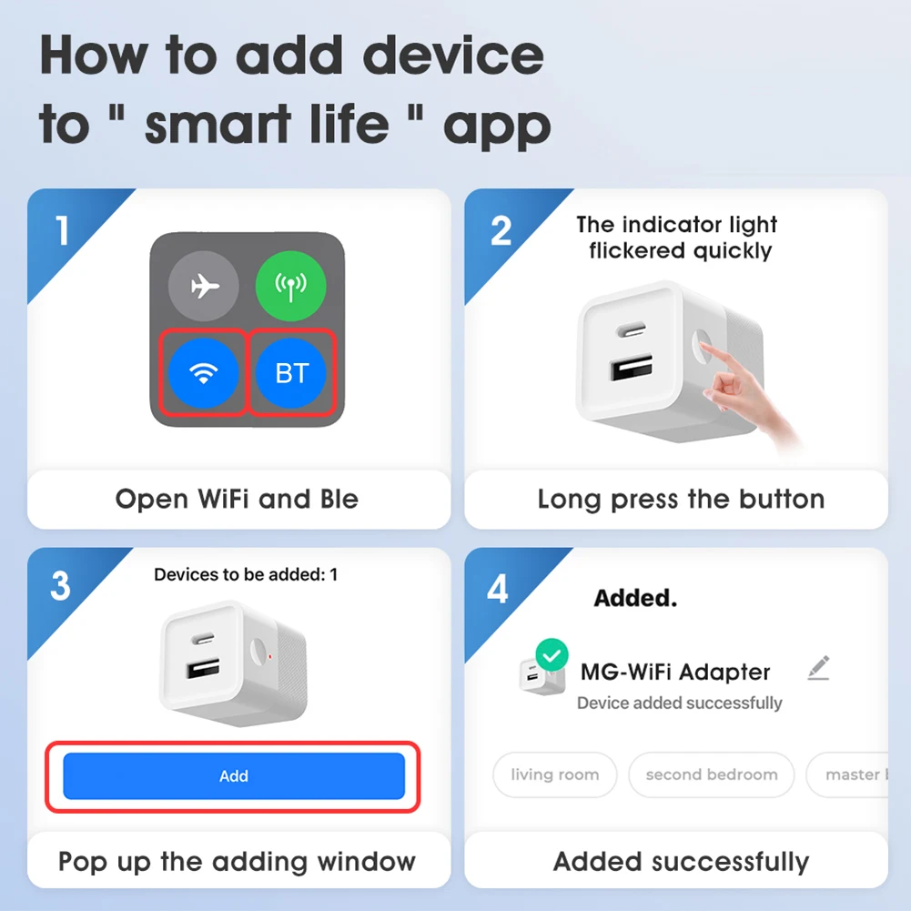 3. Características avanzadas:El adaptador USB inalámbrico Smart Home incluye recordatorios sin conexión para ayudarlo a mantenerse informado sobre el estado del dispositivo, compartir dispositivos para que cada miembro de la familia pueda disfrutar fácilmente de la comodidad, y control de grupo para administrar múltiples dispositivos inteligentes con un solo comando, como configurar un "grupo de suspensión" para apagar todos los dispositivos a la vez.