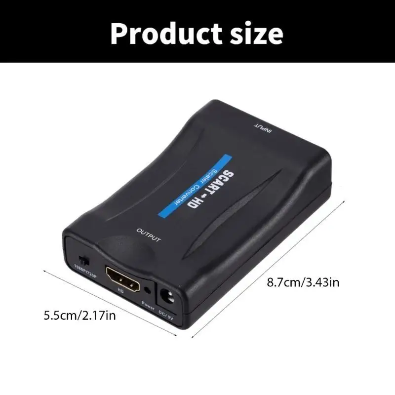 Características:OOTDTYEl convertidor de interfaz Scart a multimedia puede convertir la entrada analógica del puerto Scart en una salida de interfaz multimedia 1080p (60HZ).