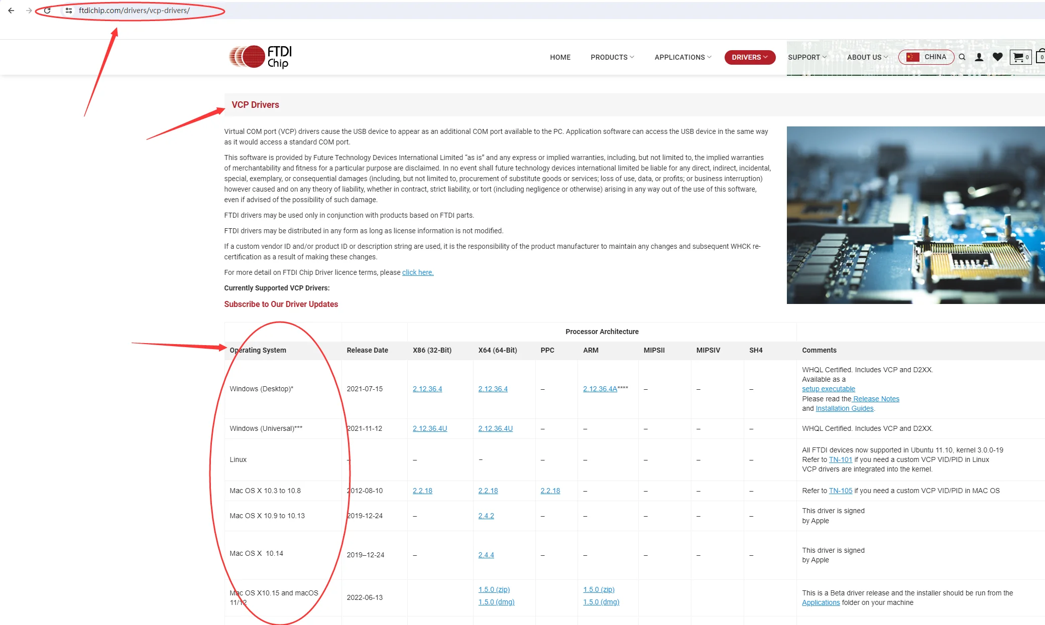Descarga del controlador FTDI: Vaya al sitio web oficial de FTDI para descargarlo (controlador VCP)
