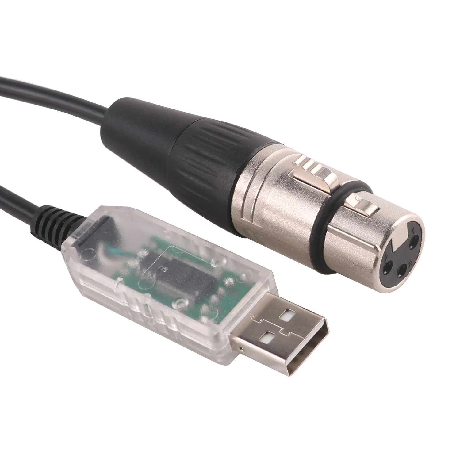 Adaptador de interfaz USB a DMX512 FTDI FT232RNL Chip RS485 convertidor serie LED Control de luz de escenario Cable giratorio LED
