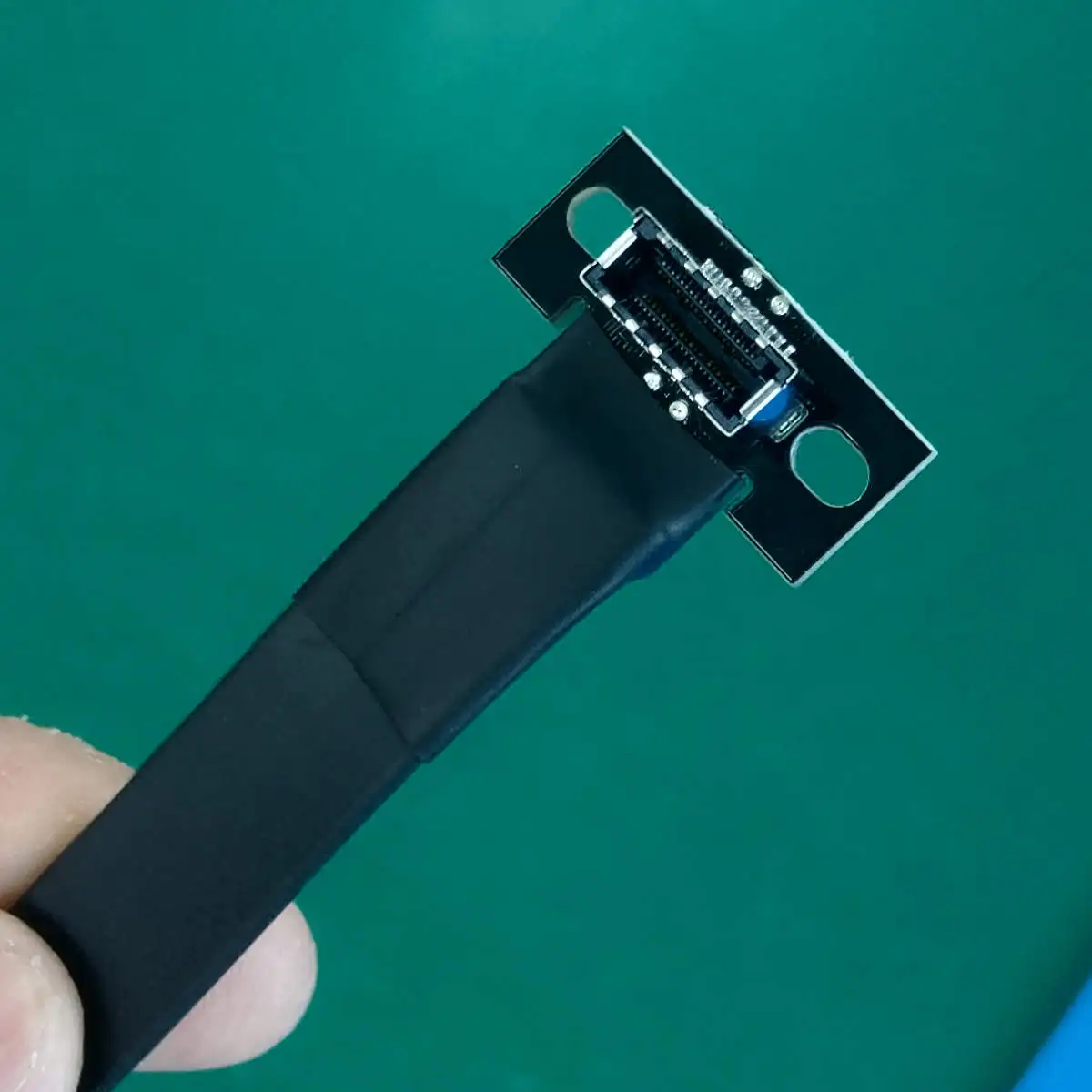 Sin blindaje de metal, este cable utiliza polímero conductor de blindaje EMI, un nuevo tipo de material para blindaje EMI, diseño de cable plano. Esta técnica permite que cada cable esté completamente cubierto por un escudo EMI de polímero conductor para evitar la emisión entrante o saliente de frecuencias electromagnéticas, minimizar la interferencia y la degradación del rendimiento y reducir el peso del extensor.