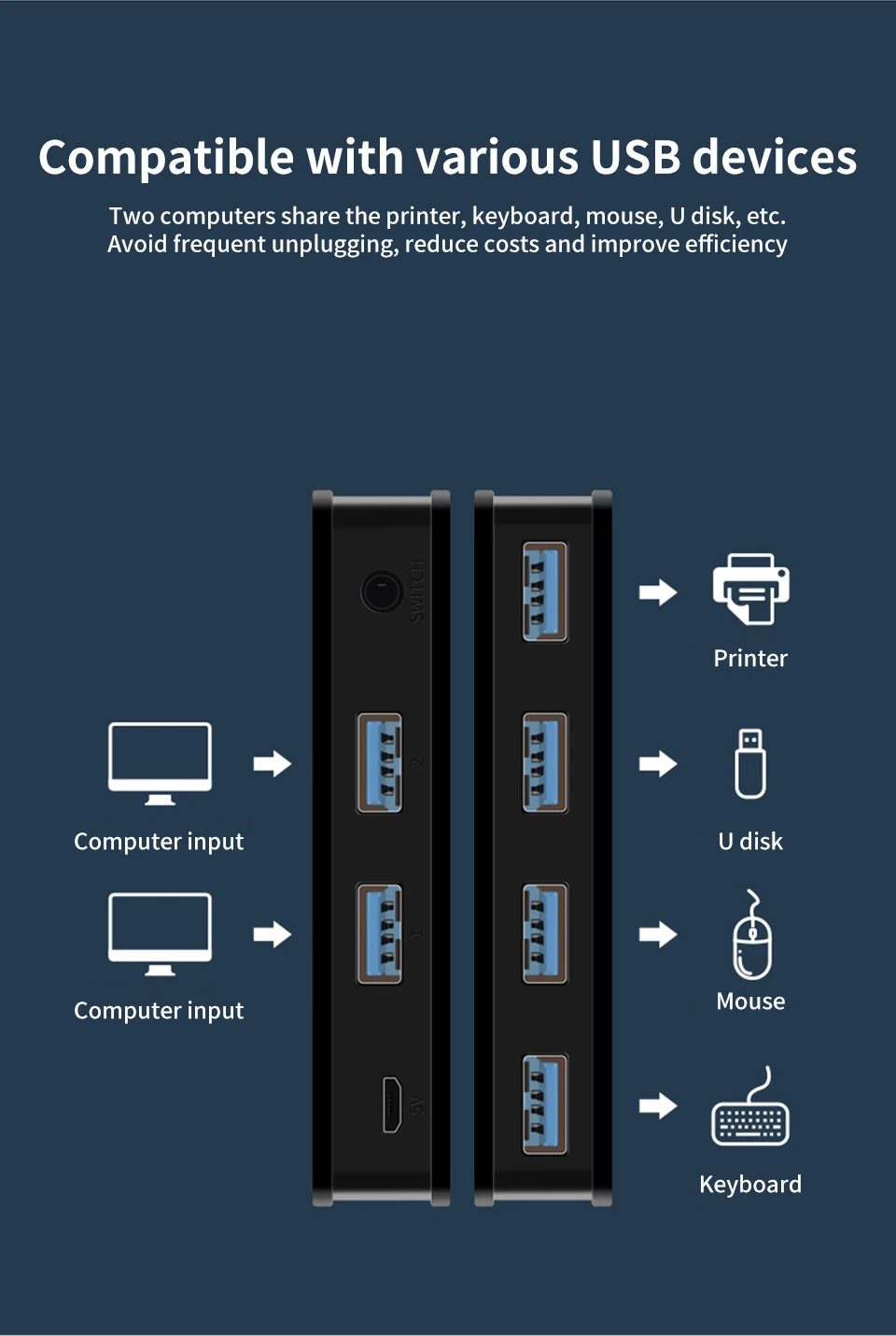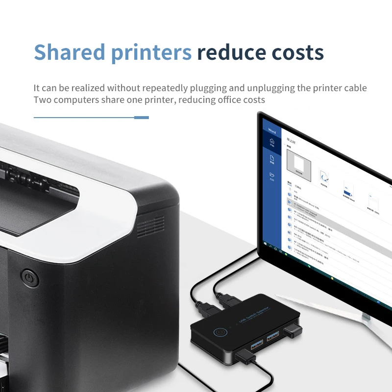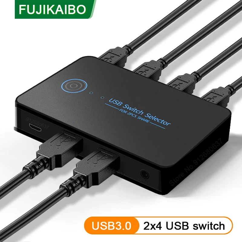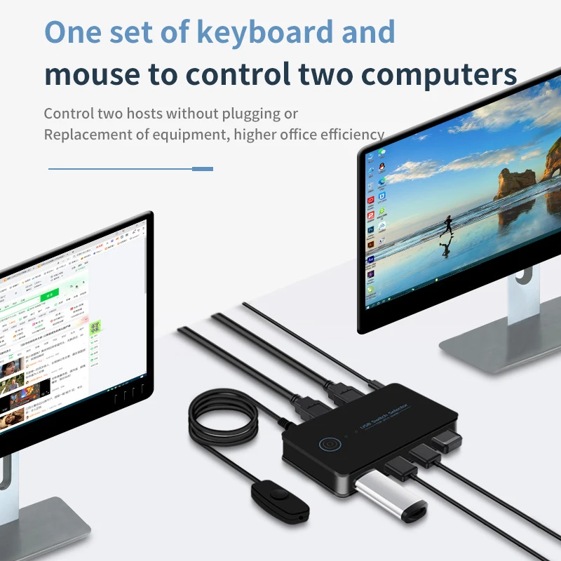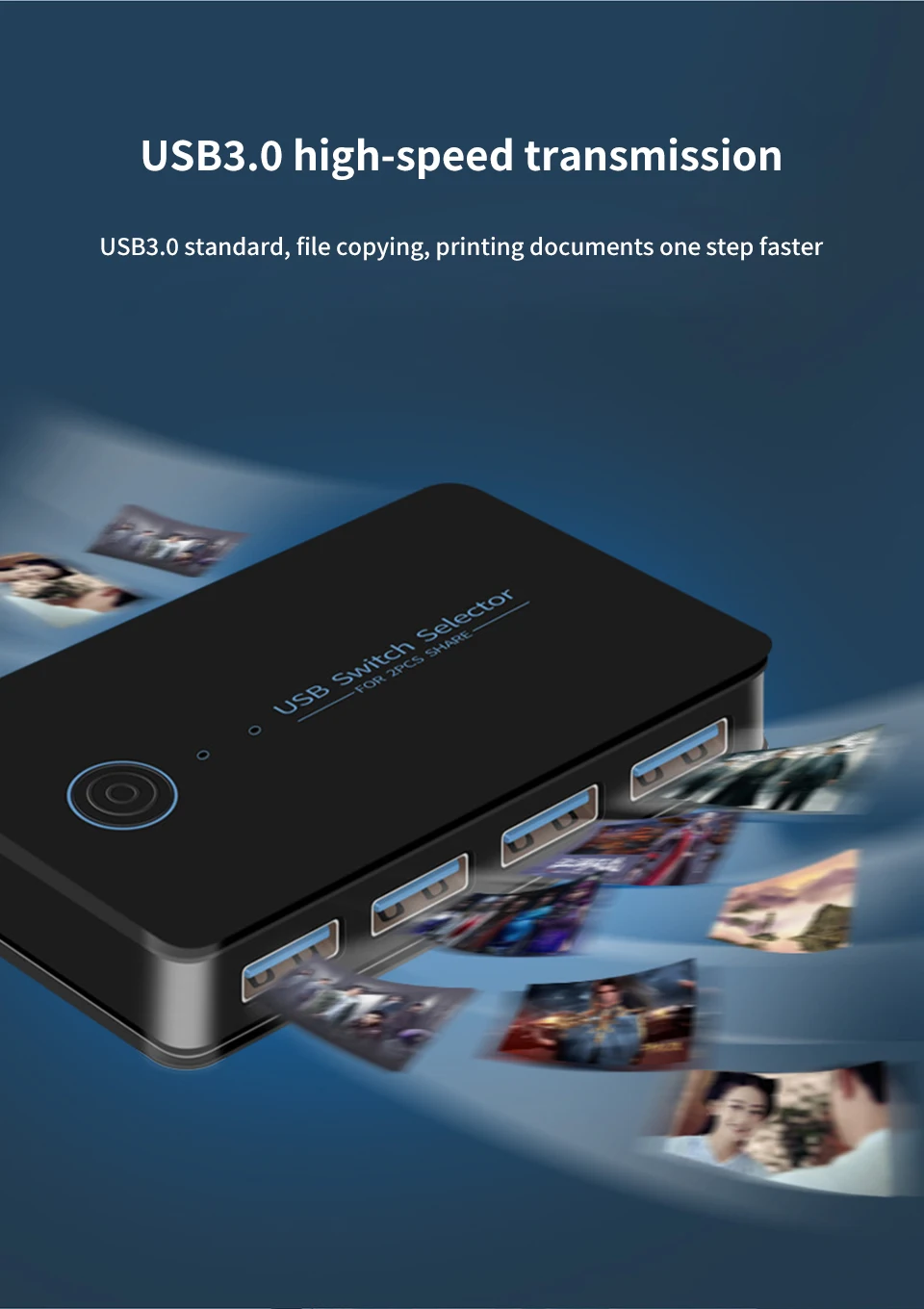 Comprar Adaptador de interruptor compartido USB 3,0 2,0, conmutador KVM Hub, divisor para teclado, ratón, impresora, portátil, 2 piezas, compartir 4 dispositivos