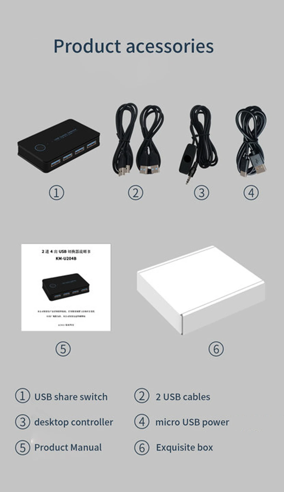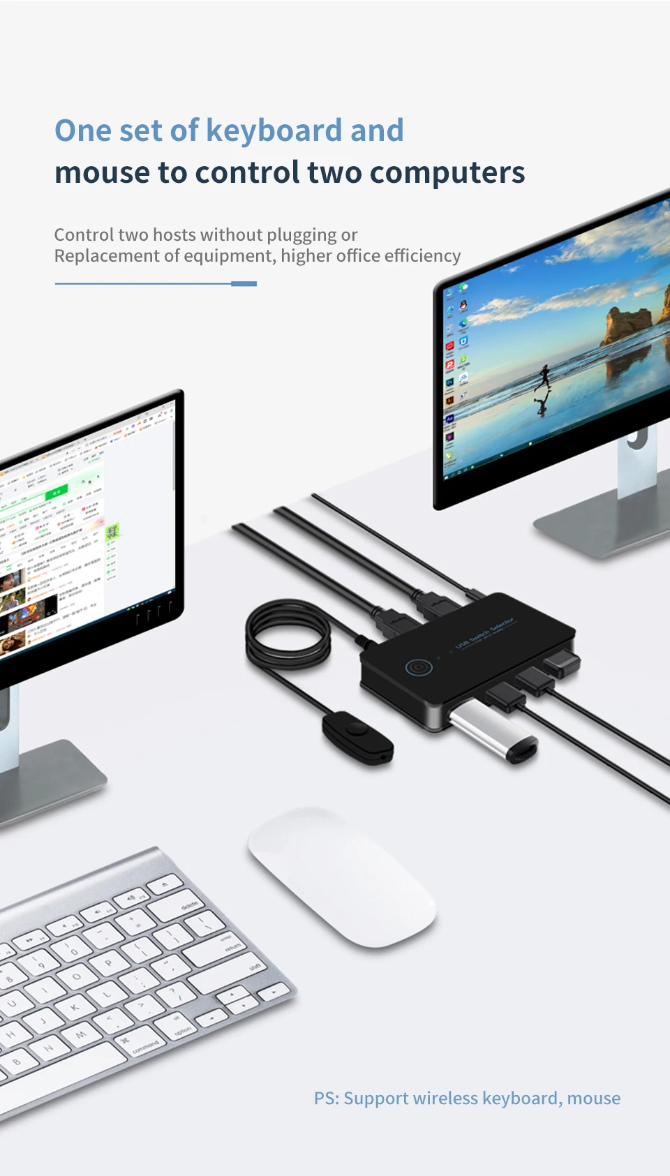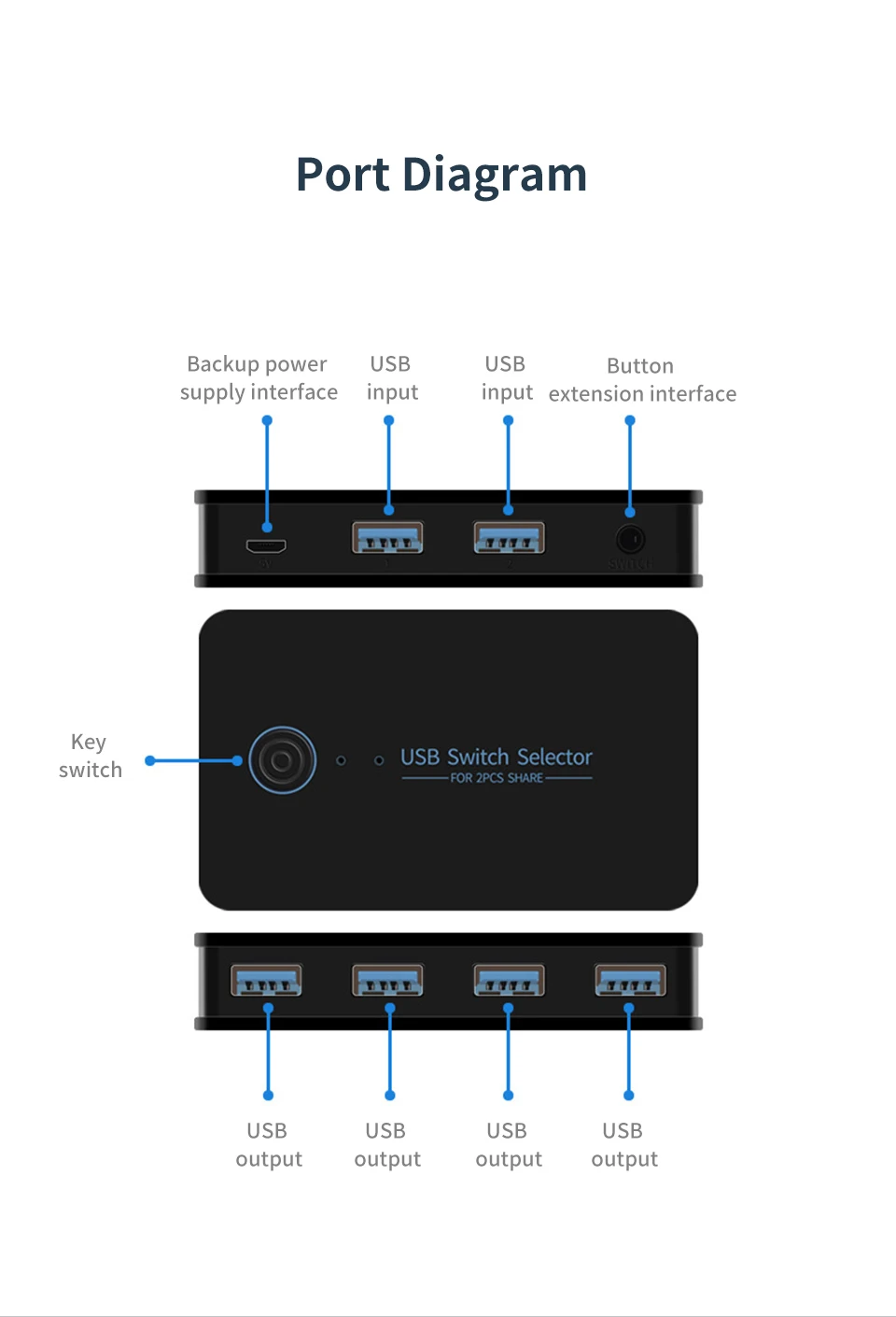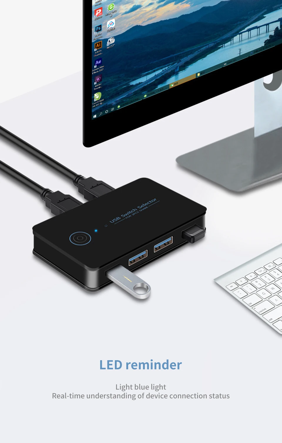 Comprar Adaptador de interruptor compartido USB 3,0 2,0, conmutador KVM Hub, divisor para teclado, ratón, impresora, portátil, 2 piezas, compartir 4 dispositivos