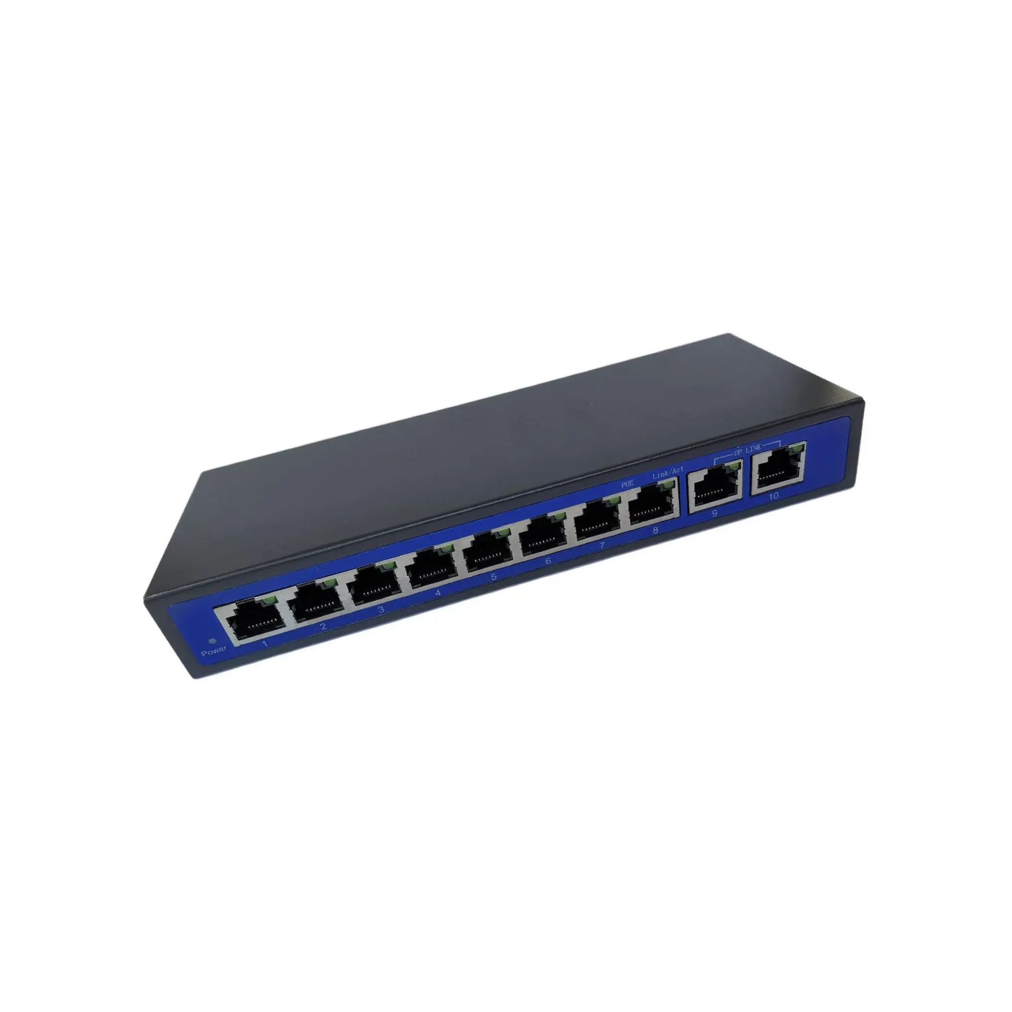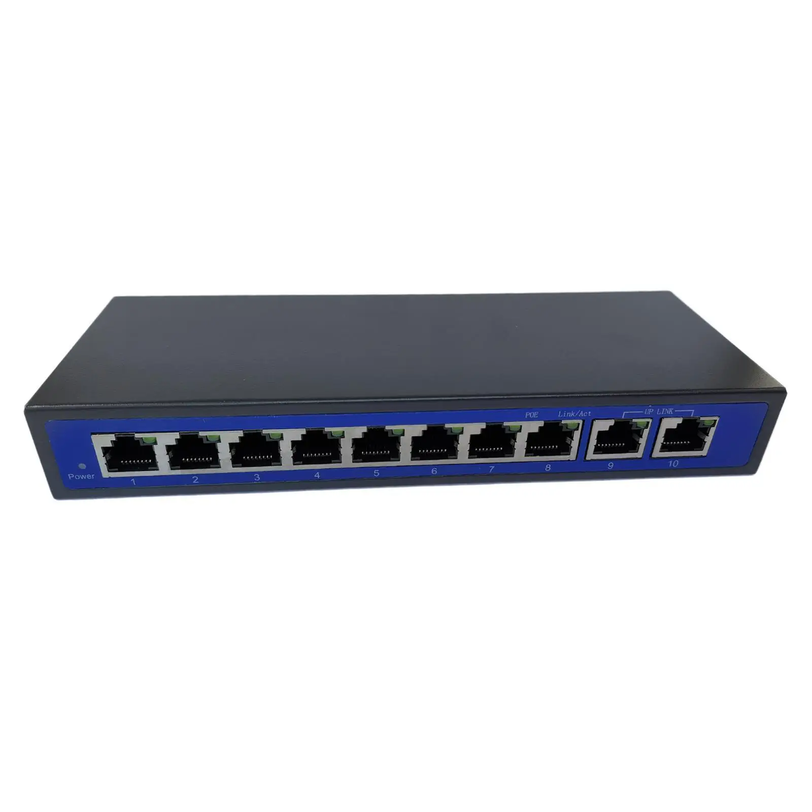 8 puertos POE y 2 Uplink, cumple con los estándares IEEE 802.3af IEEE 802.3at.