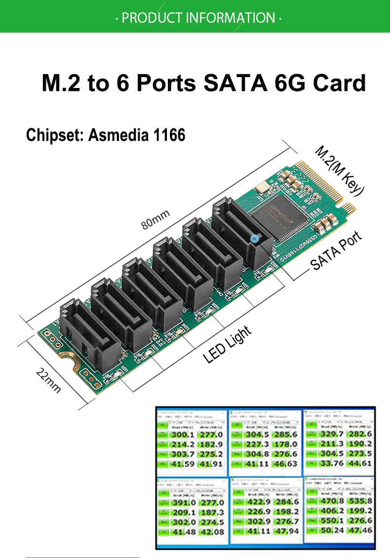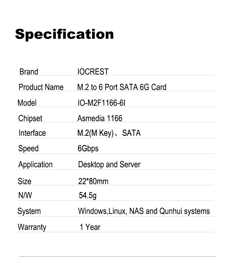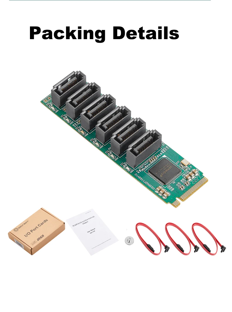 Comprar Adaptador IOCREST M.2 (PCIe 3,0) a 6 puertos SATA III 6G SSD con 3 cables SATAIII PCIe Gen3x2 Chip Asmedia 1166 no RAID