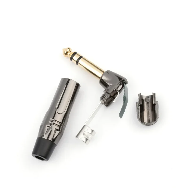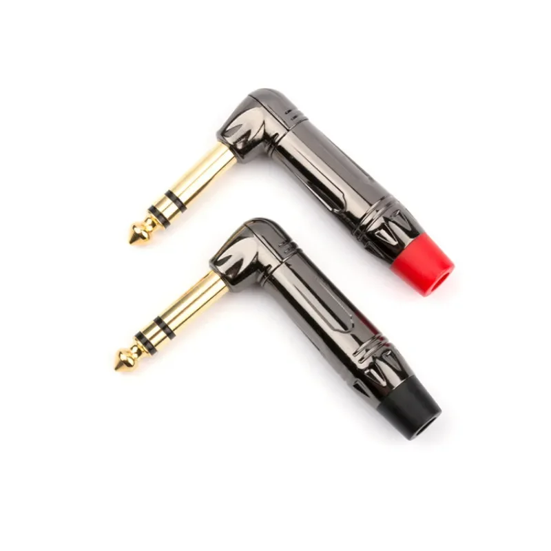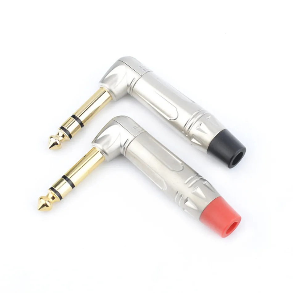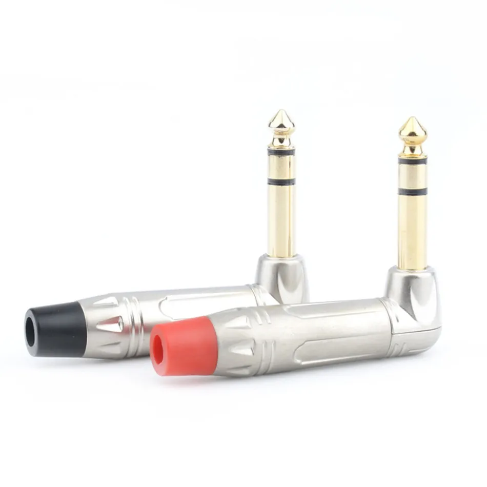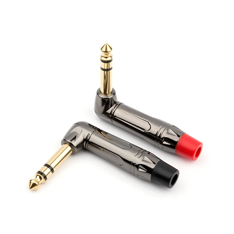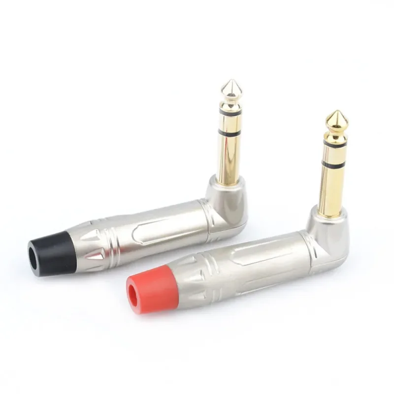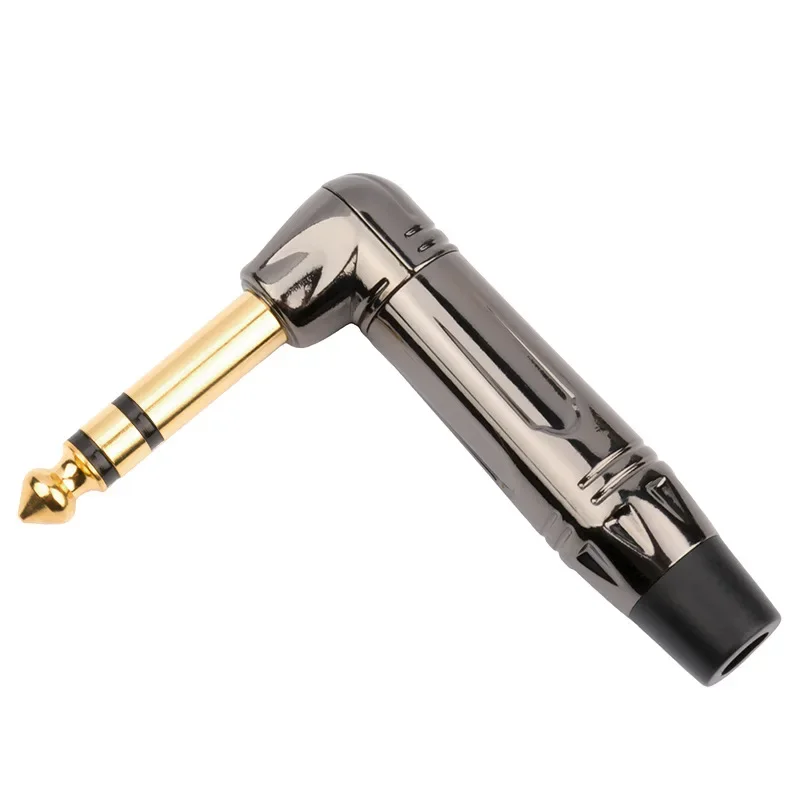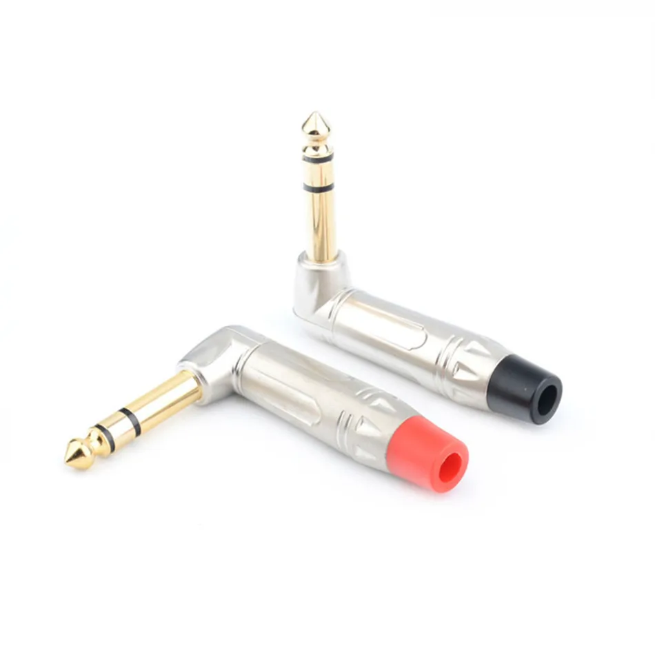1. Nombre:6,35mm 90 grados enchufe estéreo chapado en oro Audio Jack 6 35mm conector