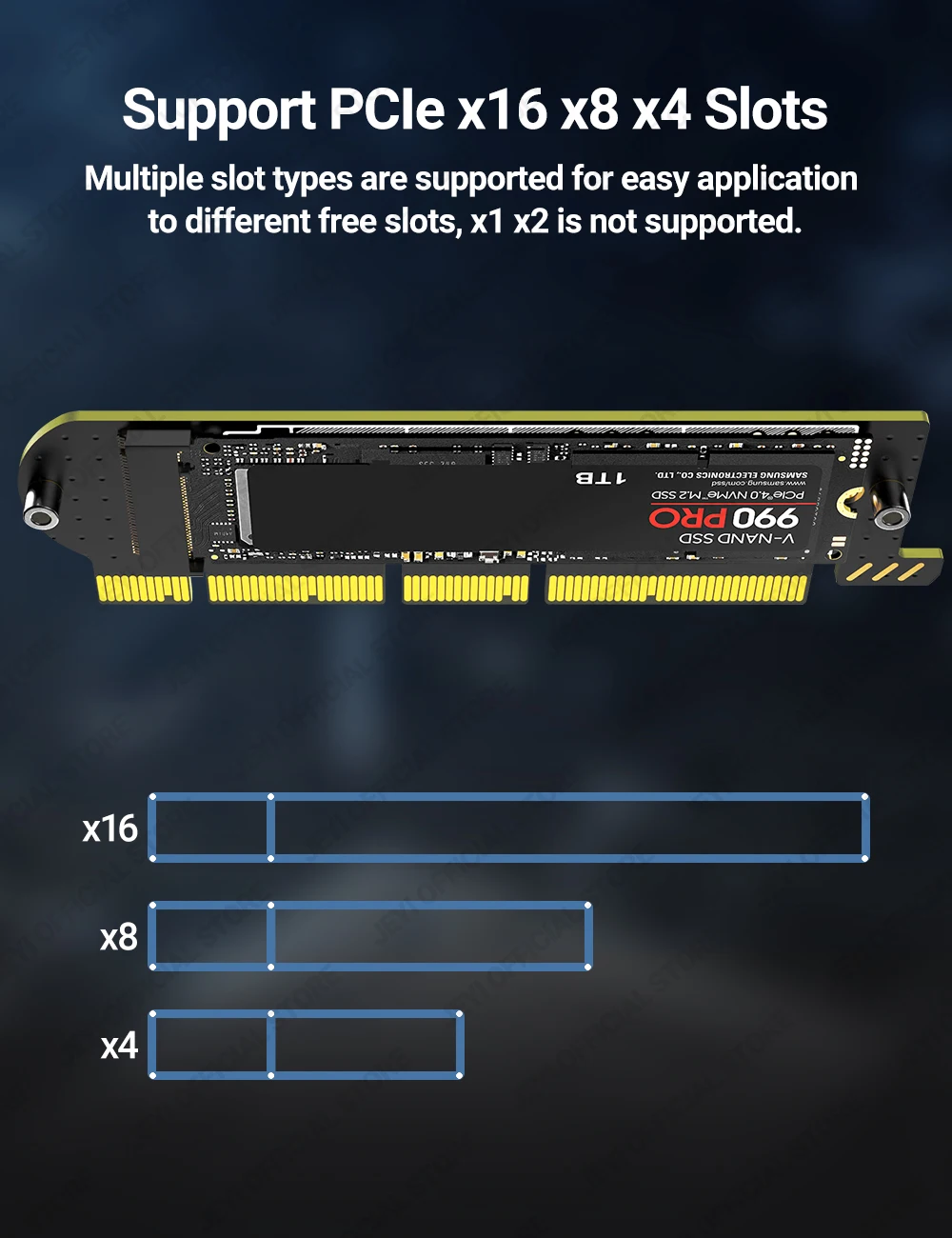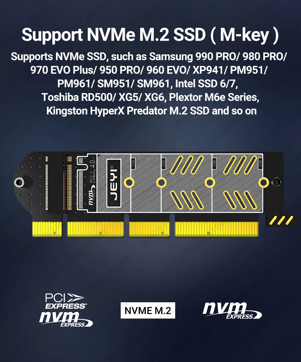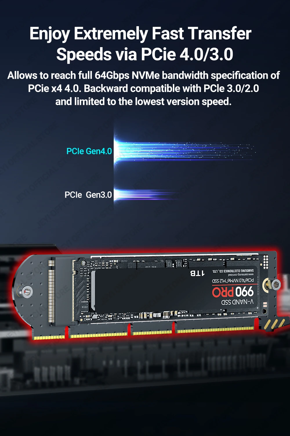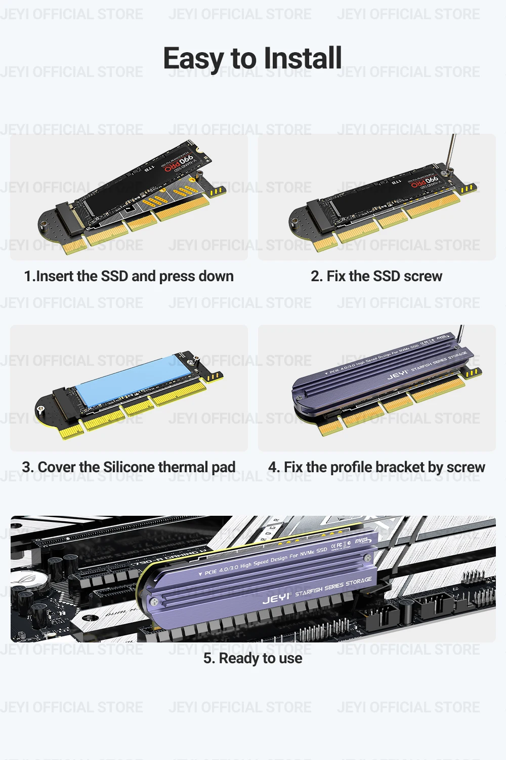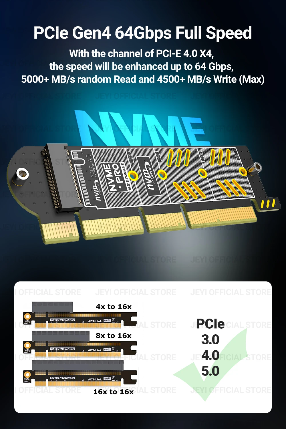 Comprar Adaptador JEYI M.2 NVME a PCIe 4,0 3,0 con disipador térmico SSD de aluminio, tarjeta de expansión NVMe 64Gbps Gen4 PCIE X4 X8 X16 para escritorio