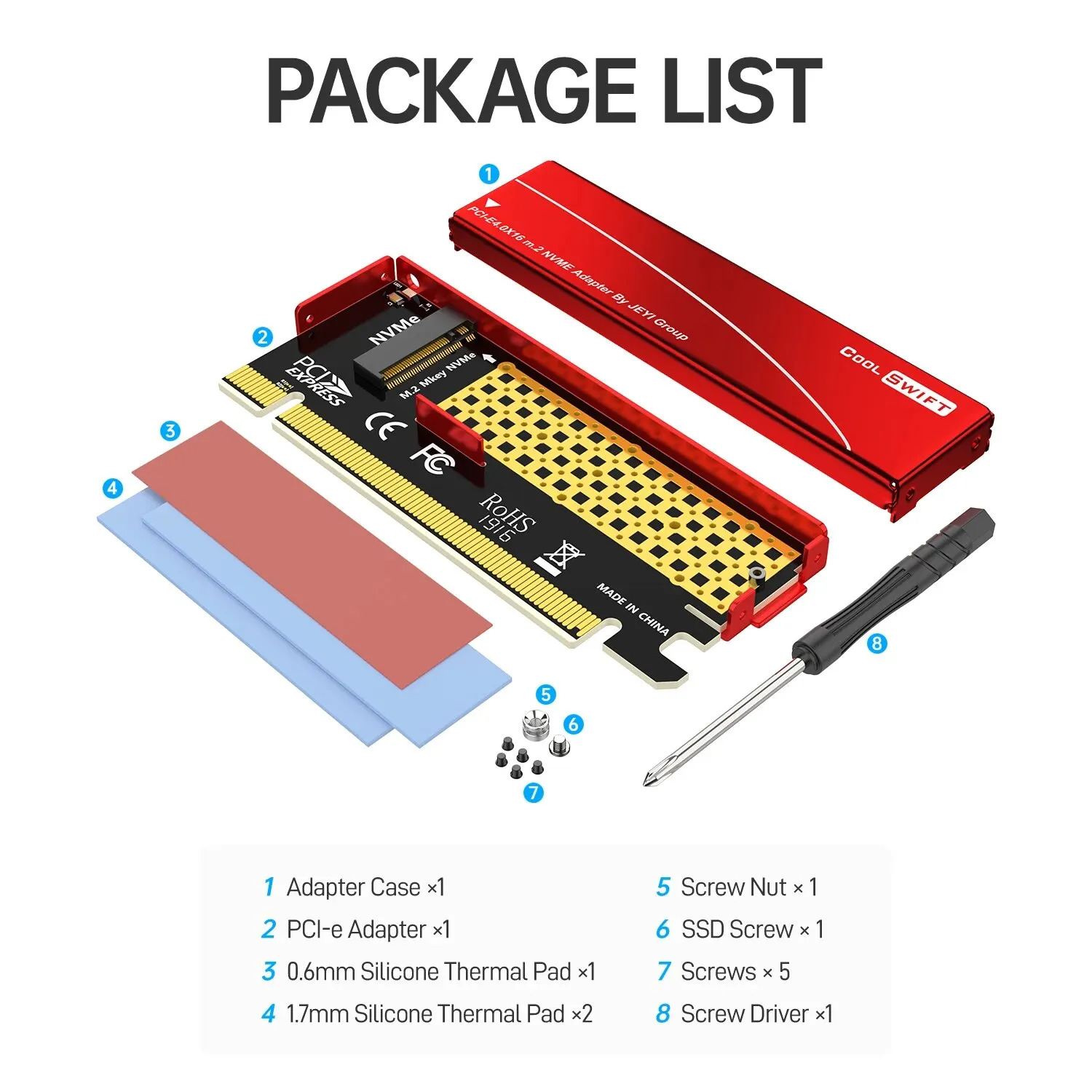 JEYI M.2 M clave Nvme SSD A Adaptador PCI-e, tarjeta PCI Express X16 con caja de aluminio, soporta Windows 7/8/10, soporta 2230, 2242, 2260, 2280