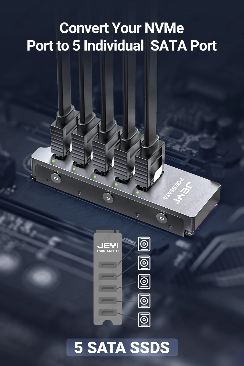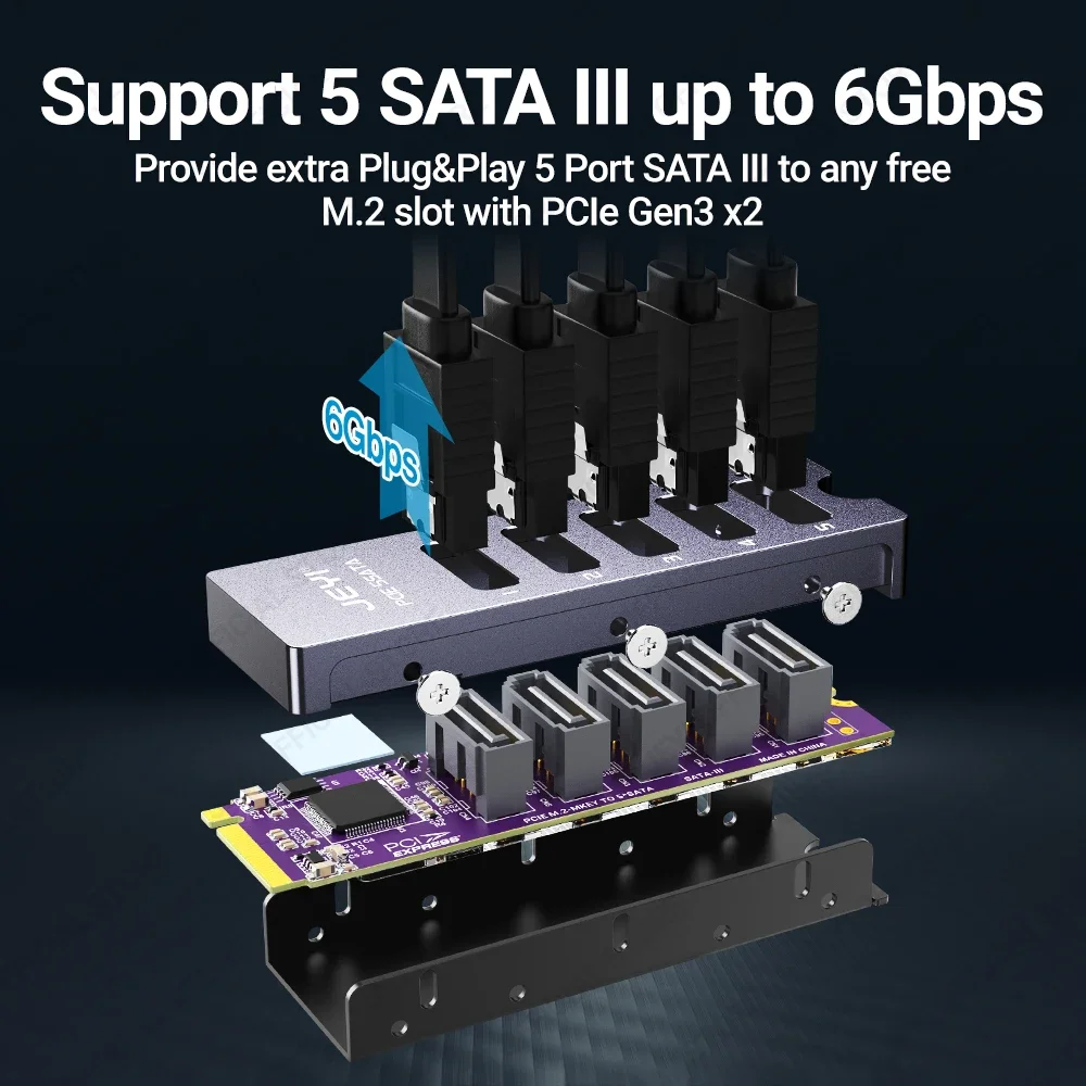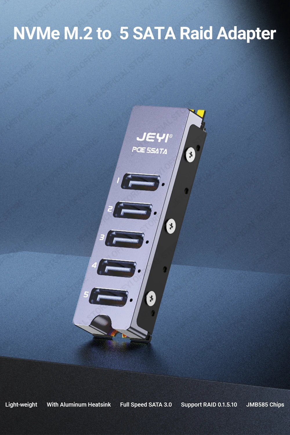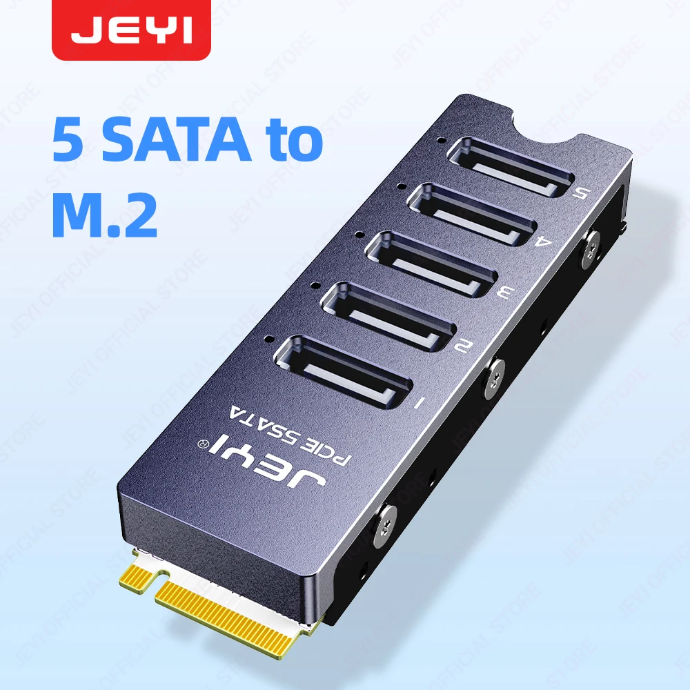 Comprar Adaptador JEYI NVMe M.2 a 5 Sata, tarjeta adaptadora NVMe interna sin RAID SATA III de 5 puertos de 6 GB/s para PC de escritorio compatible con SSD y HDD