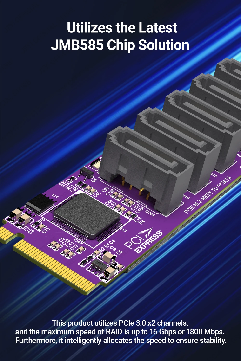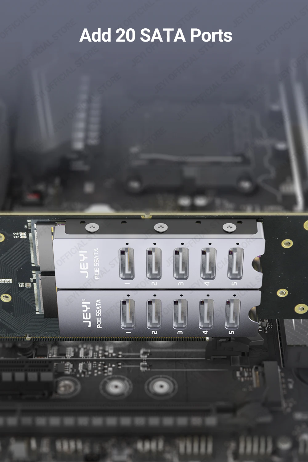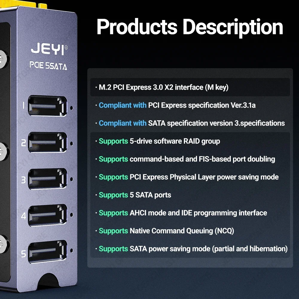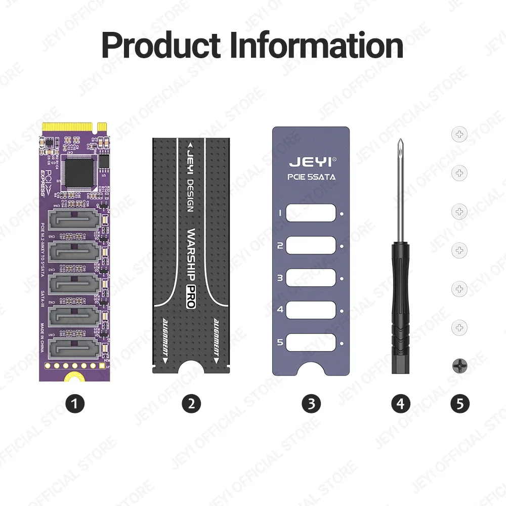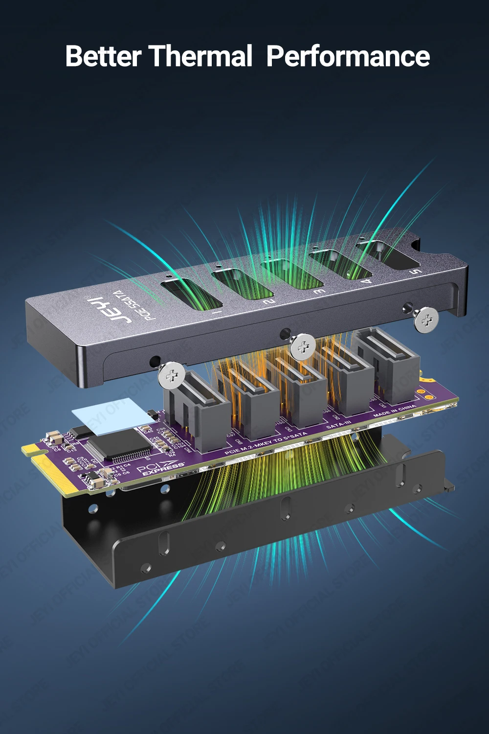 Comprar Adaptador JEYI NVMe M.2 a 5 Sata, tarjeta adaptadora NVMe interna sin RAID SATA III de 5 puertos de 6 GB/s para PC de escritorio compatible con SSD y HDD