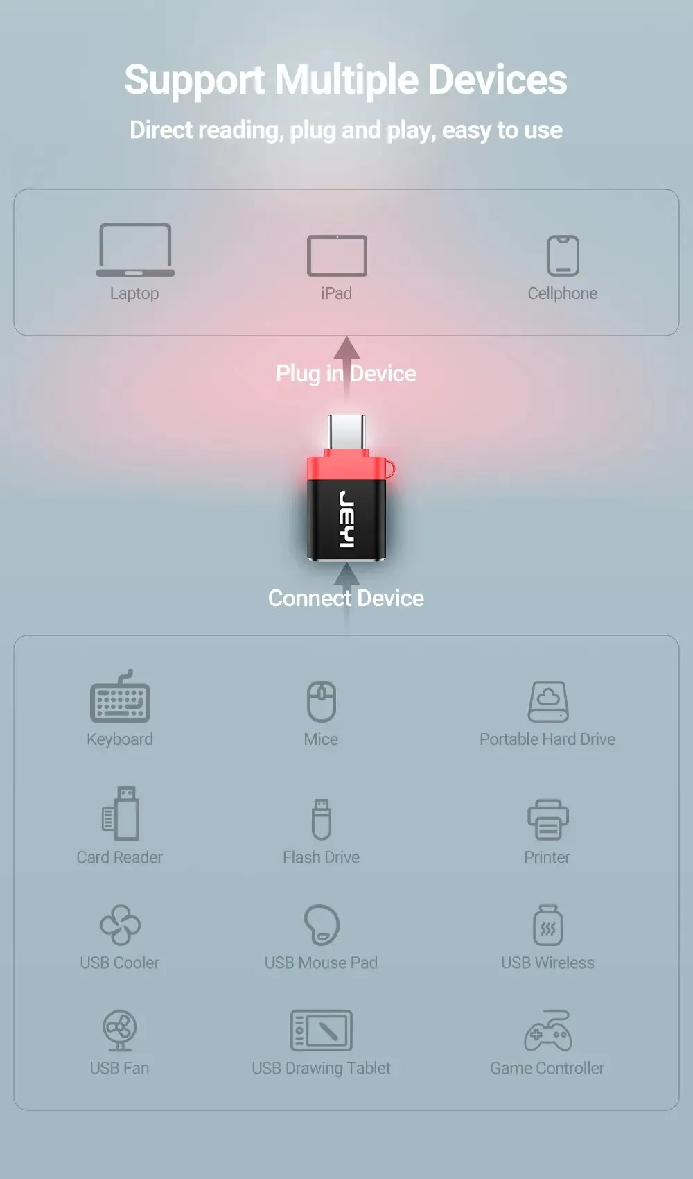 Diseño minimalista: Nuestra carcasa del adaptador OTG está hecha de aluminio de grado aeroespacial, con una estructura simple que es liviana y portátil. Es Plug-and-Play y no requiere conductor.