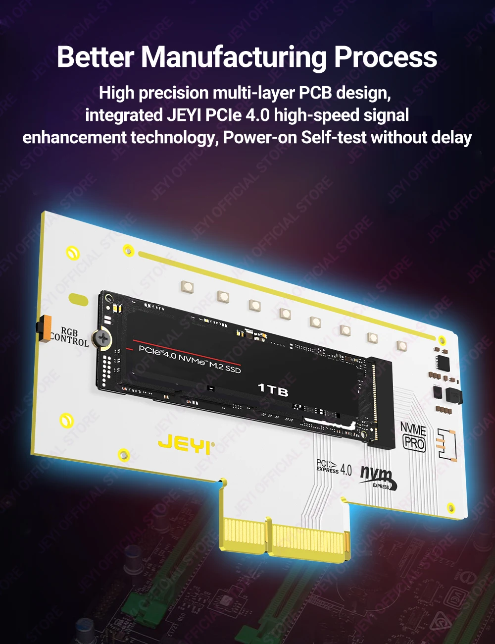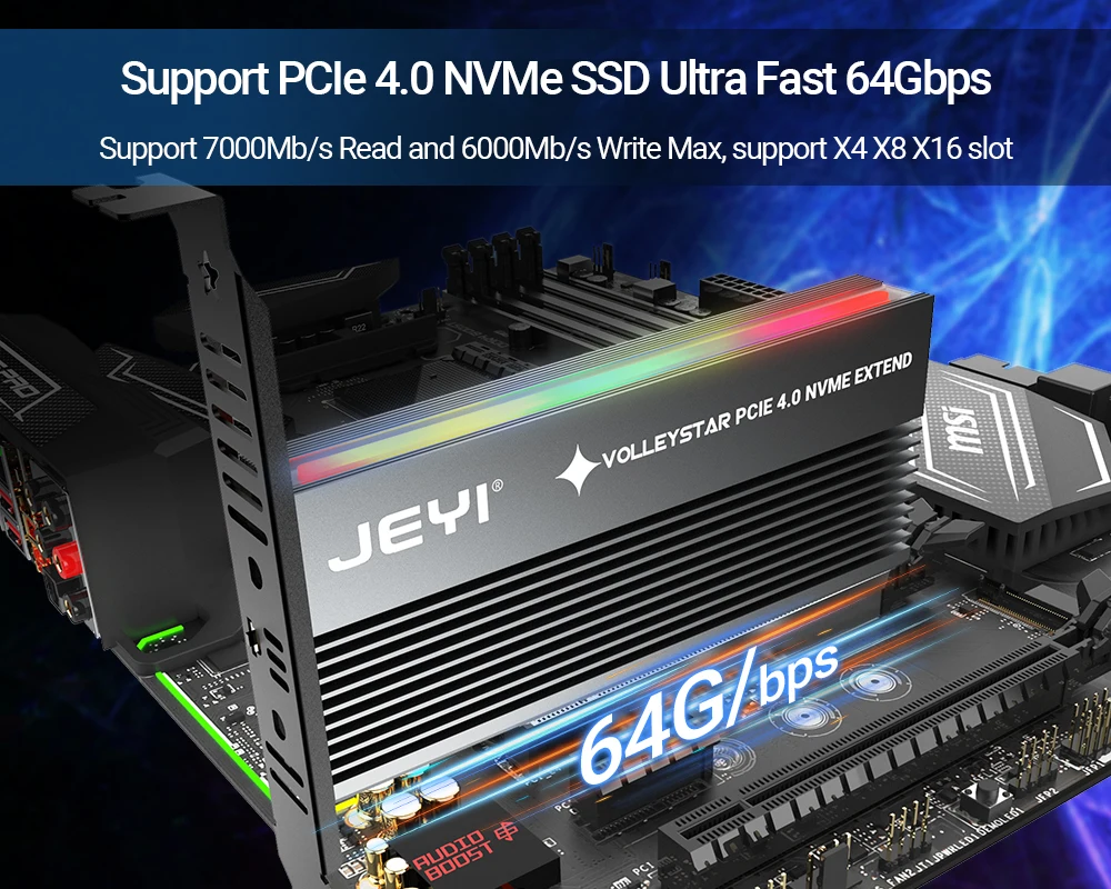 Comprar Adaptador JEYI VolleyStar PCIE a NVMe con disipador térmico de aleación de aluminio, tarjeta M.2 RGB PCIe 4,0 con soporte de perfil estándar bajo 1/2U
