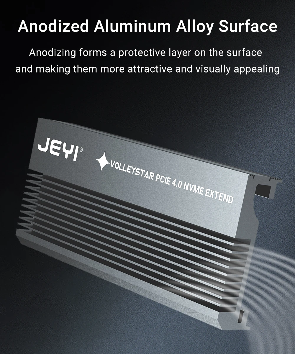 3.Esta tarjeta adaptadora NVMe PCIe viene con un disipador térmico SSD de aluminio resistente y una almohadilla compuesta térmica, y el adaptador incorpora una capa de disipador dorado, todos estos métodos para reducir el calor cuando el SSD está en funcionamiento con alta carga.