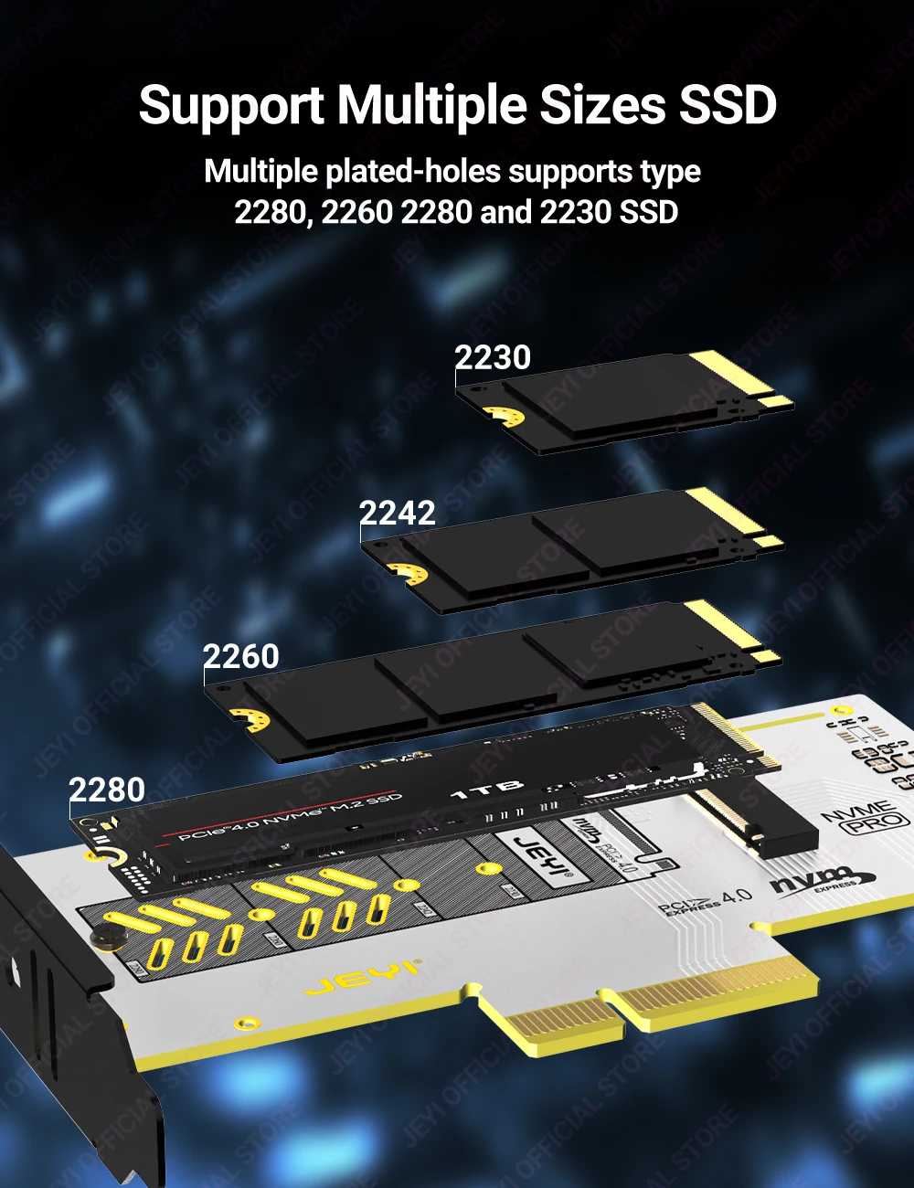 Compatible con PCIe X4 X8 X16, compatible con versiones anteriores de PCIe1.0/2.0/3.0, compatible con SSD NVMe 2280 2260 2242 2230