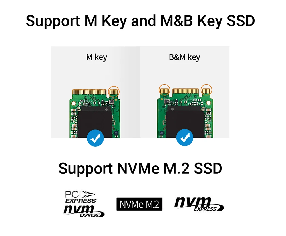 Compatible con SSD NVMe M.2 (tecla M/tecla M&B)