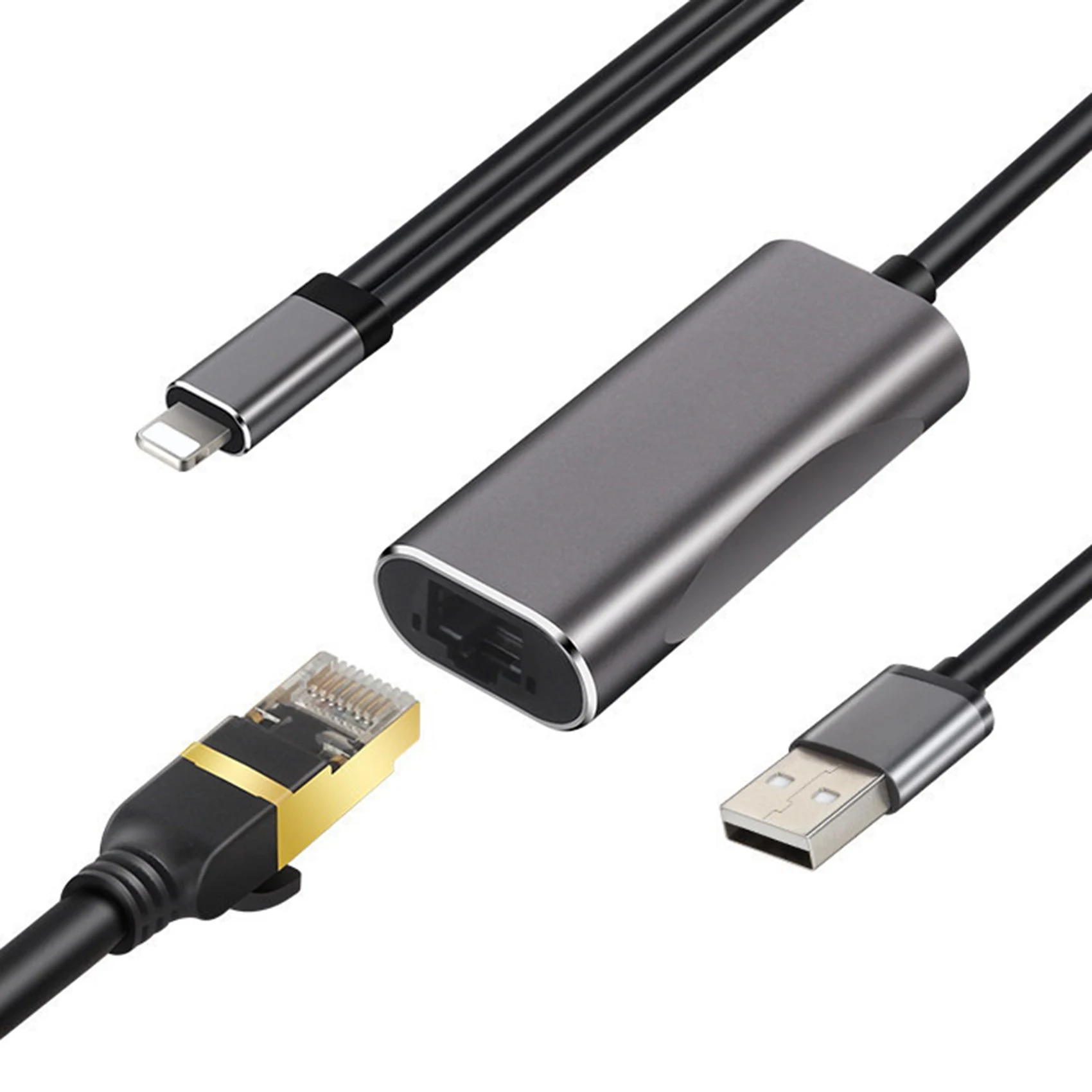 Comprar Adaptador LAN Ethernet RJ45, convertidor de red con cable de 1000Mbps, estación de acoplamiento sin conductor para iPhone, iPad