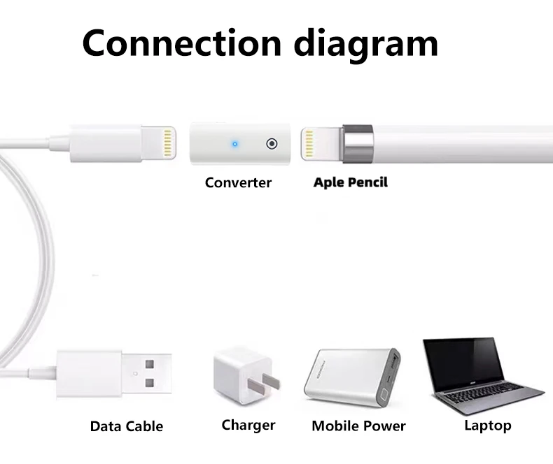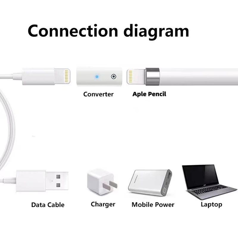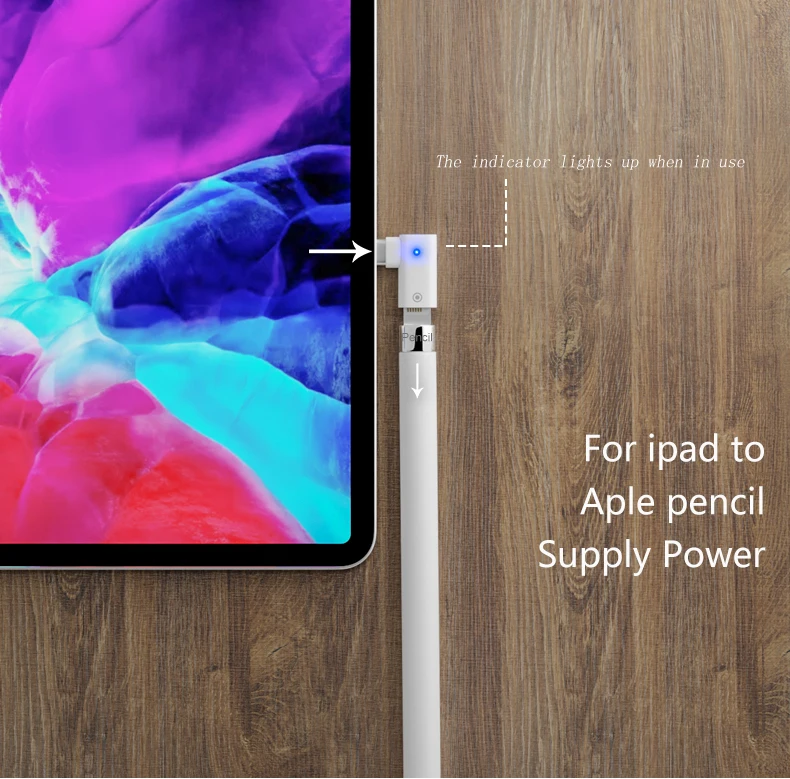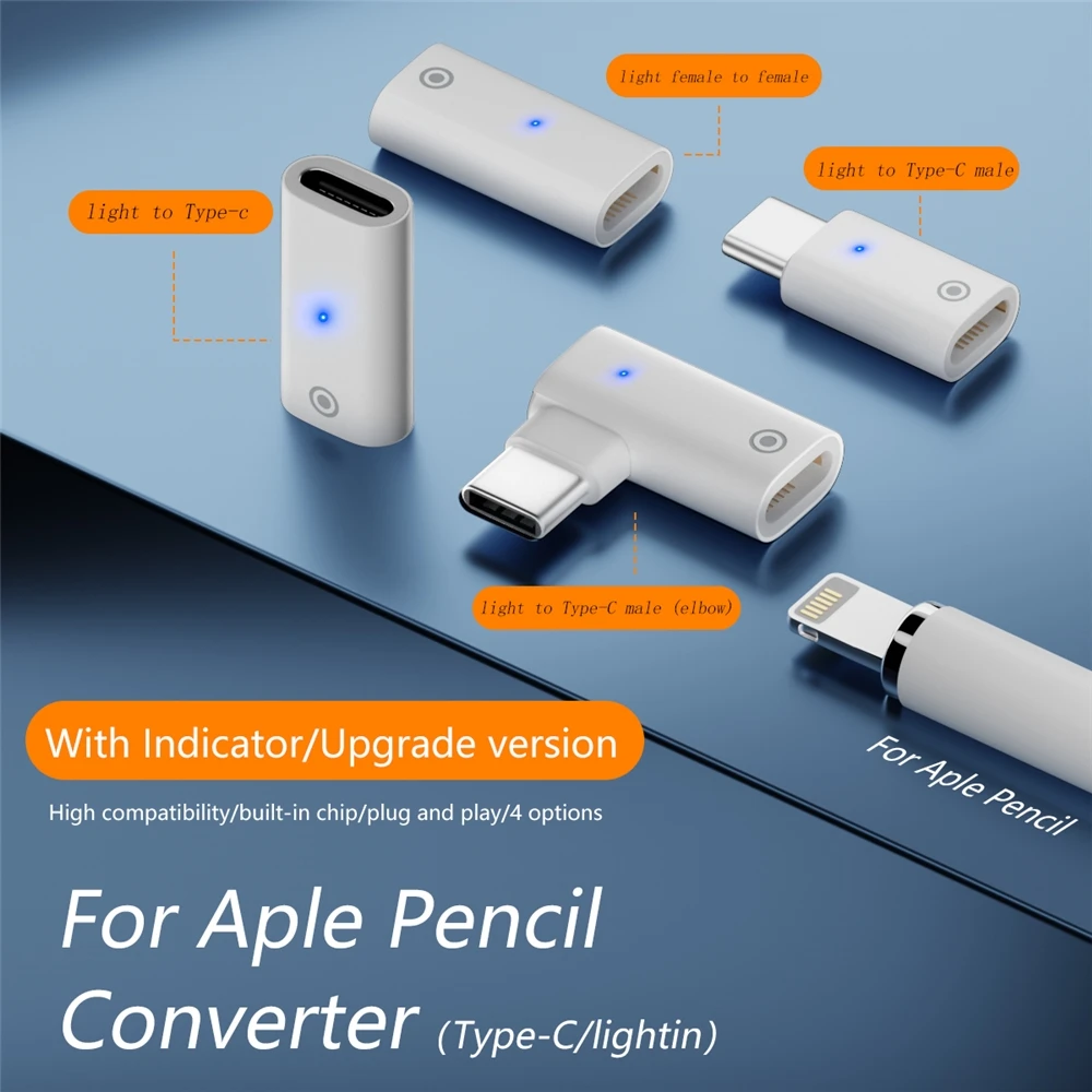 Comprar Adaptador de lápiz de Apple tipo C, convertidor macho a hembra Lightnin con luz indicadora azul para Ipad, USB-C, nueva actualización