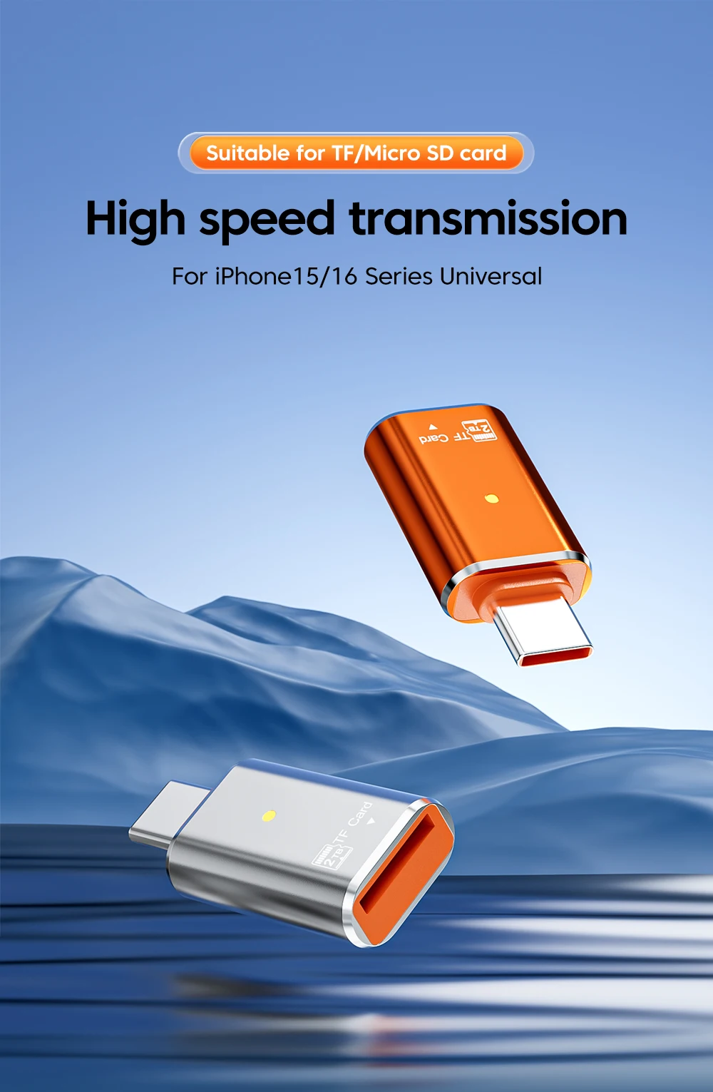 Adaptador de lector de tarjetas tipo C, lector de tarjetas Micro SD TF, adaptador de tarjeta de memoria USB-C para iPhone 15 16 Pro Max Macbook Samsung Huawei