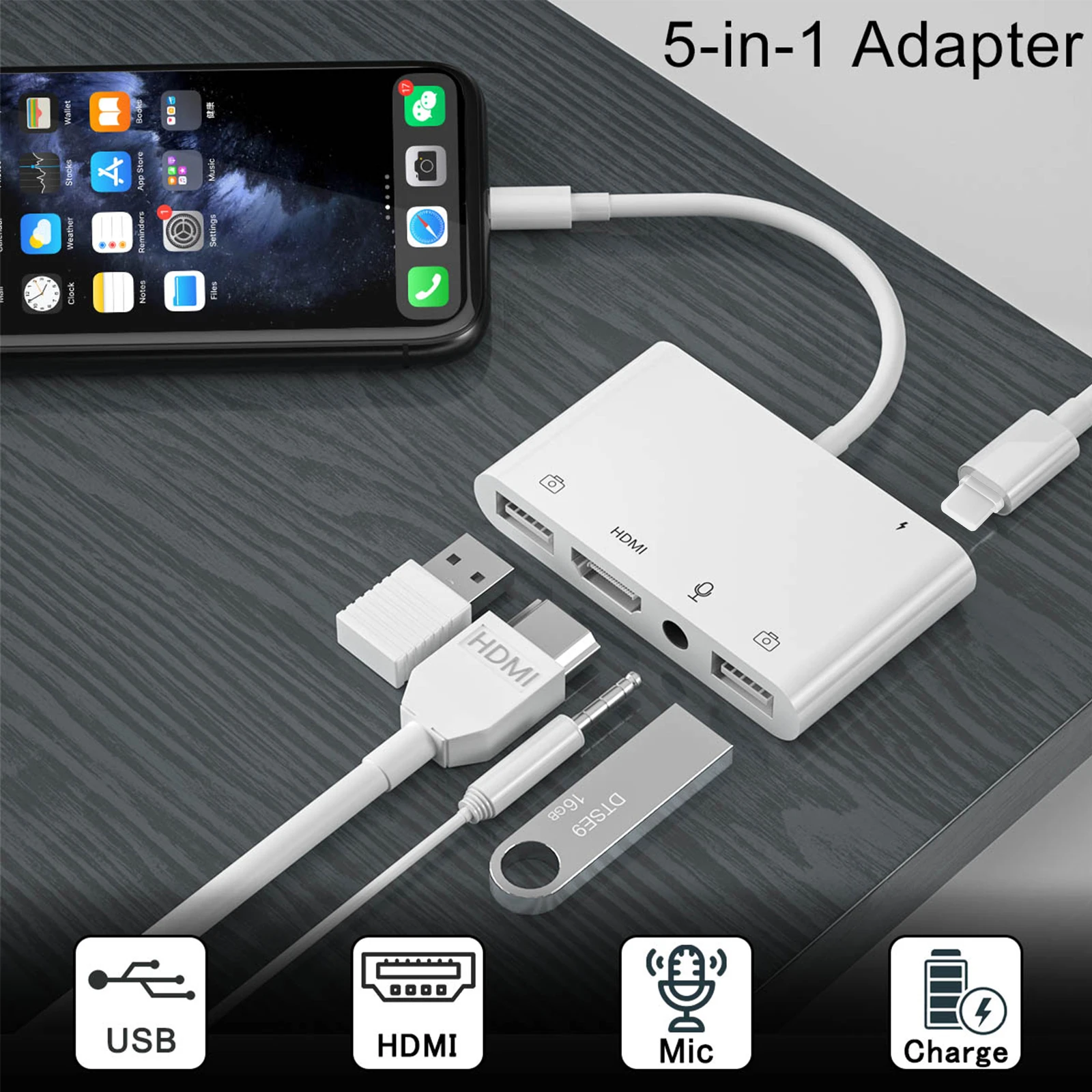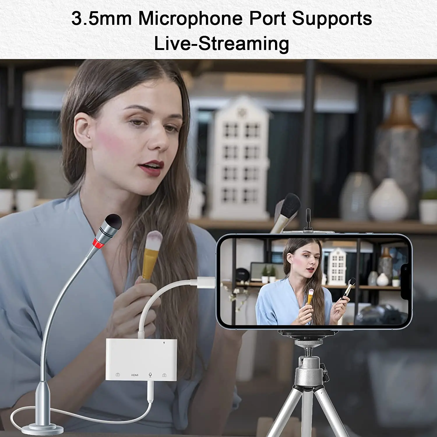 Comprar Adaptador Lightning a HDMI para iPhone, iPad a TV, adaptador USB Dual OTG, adaptador de micrófono para transmisión en vivo con carga