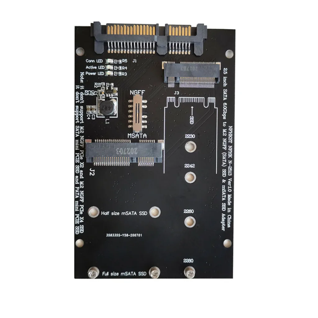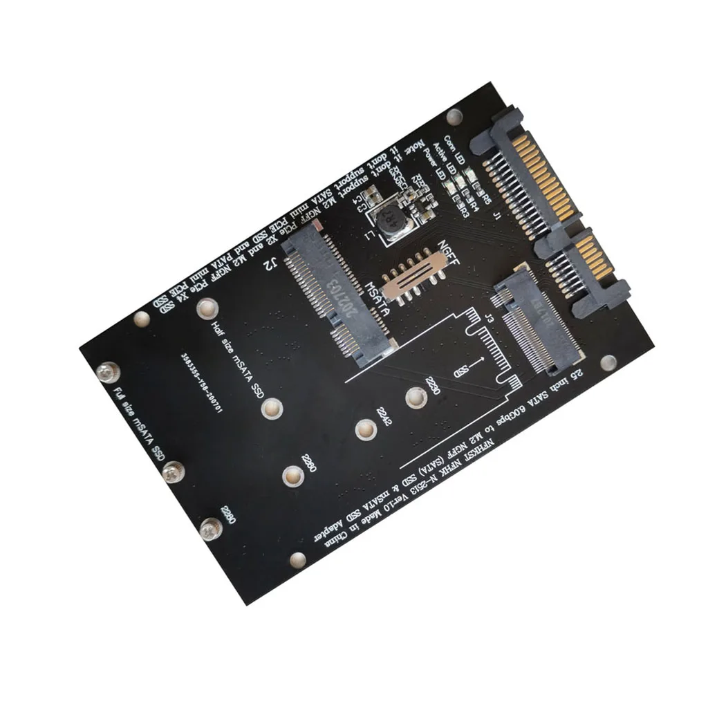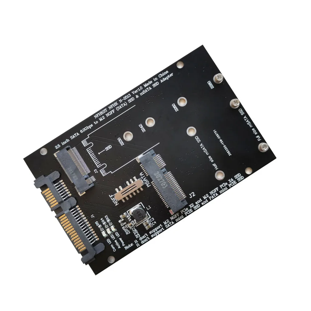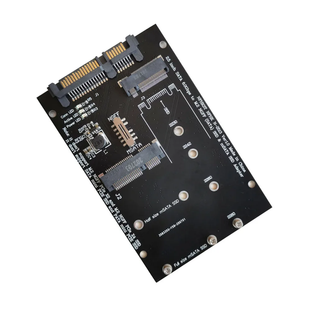 Es compatible con MSATA SSD y NGFF SSD definidos por SATA. Los orificios para tornillos NGFF están diseñados con 2230 2242 2260 2280.