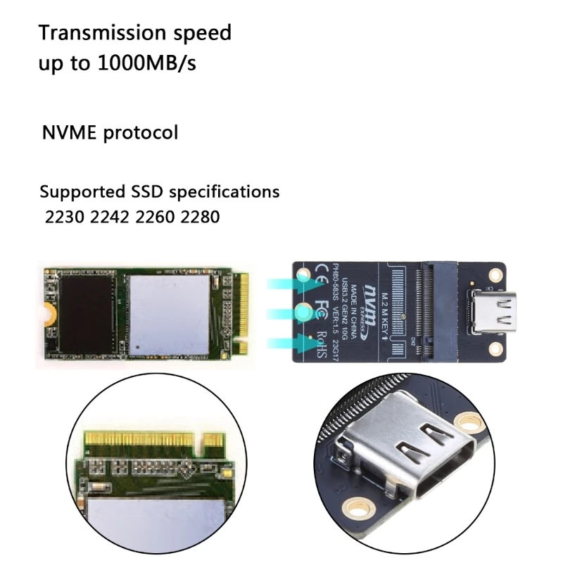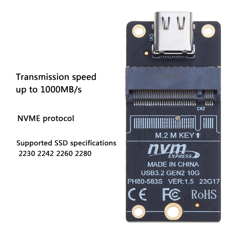 Características:OOTDTYPara tarjeta adaptadora de carcasa de disco duro M.2 NVMe M.2 a Type-c USB3.1 Gen2 10Gbps