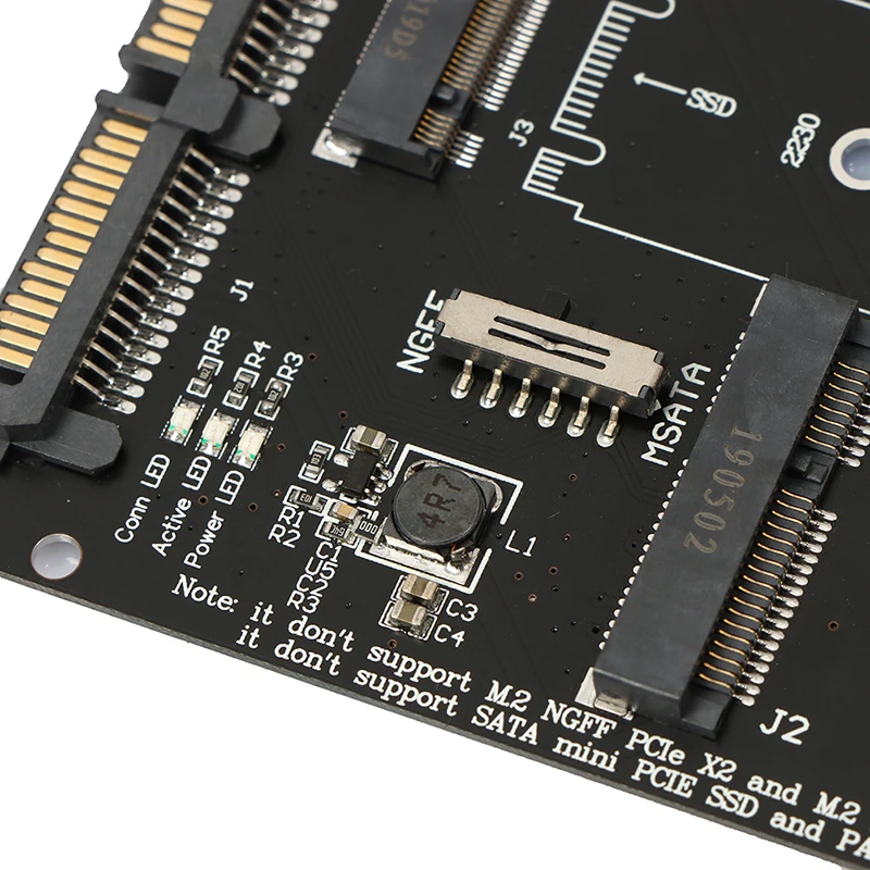 1: Este producto admite el SSD definido por la interfaz msata en mini pci-e. msata no es igual a micro SATA de 1,8 pulgadas.Al mismo tiempo, este producto también admite la conversión de disco duro de estado sólido con protocolo SATA m.2 ngff a interfaz SATA de 2,5 pulgadas.Sin embargo, los dos tipos de discos duros no se pueden utilizar al mismo tiempo.Si inserta dos tipos de discos duros al mismo tiempo, solo podrá leer uno de ellos.