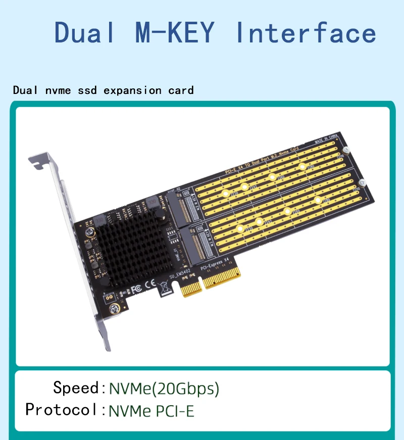 Comprar Adaptador M2 NVME PCIE para NVMe SSD clave M B & M a PCI Express X4, elevador de tarjeta de expansión con soporte de perfil bajo, 2 puertos sin división