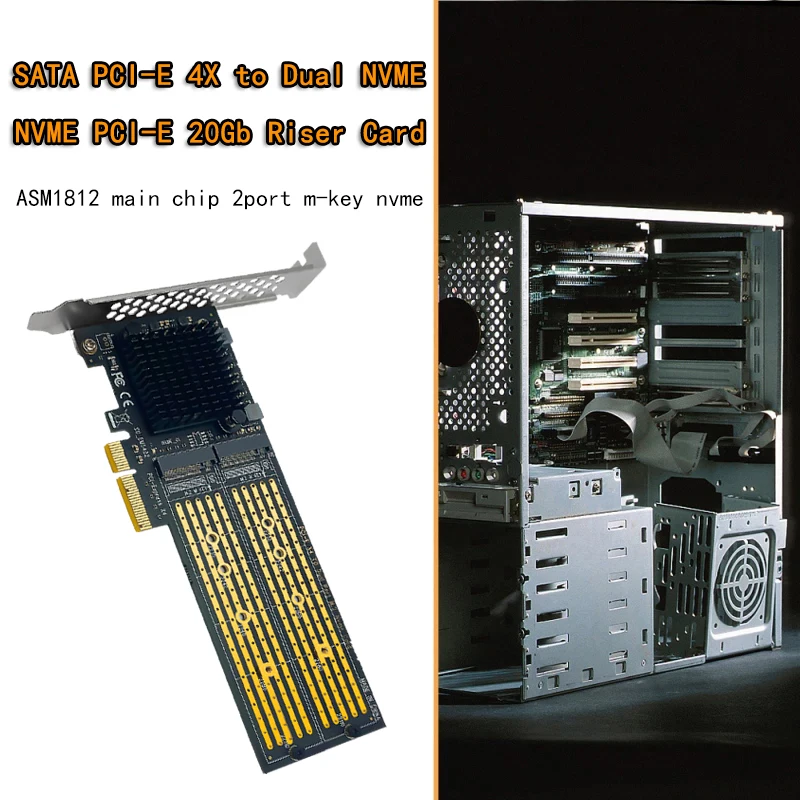 Adaptador PCIE NVME M2 de 2 puertos sin dividir para NVMe SSD M Key B & M Key a PCI Express X4 Riser de tarjeta de expansión con soporte de perfil bajo
