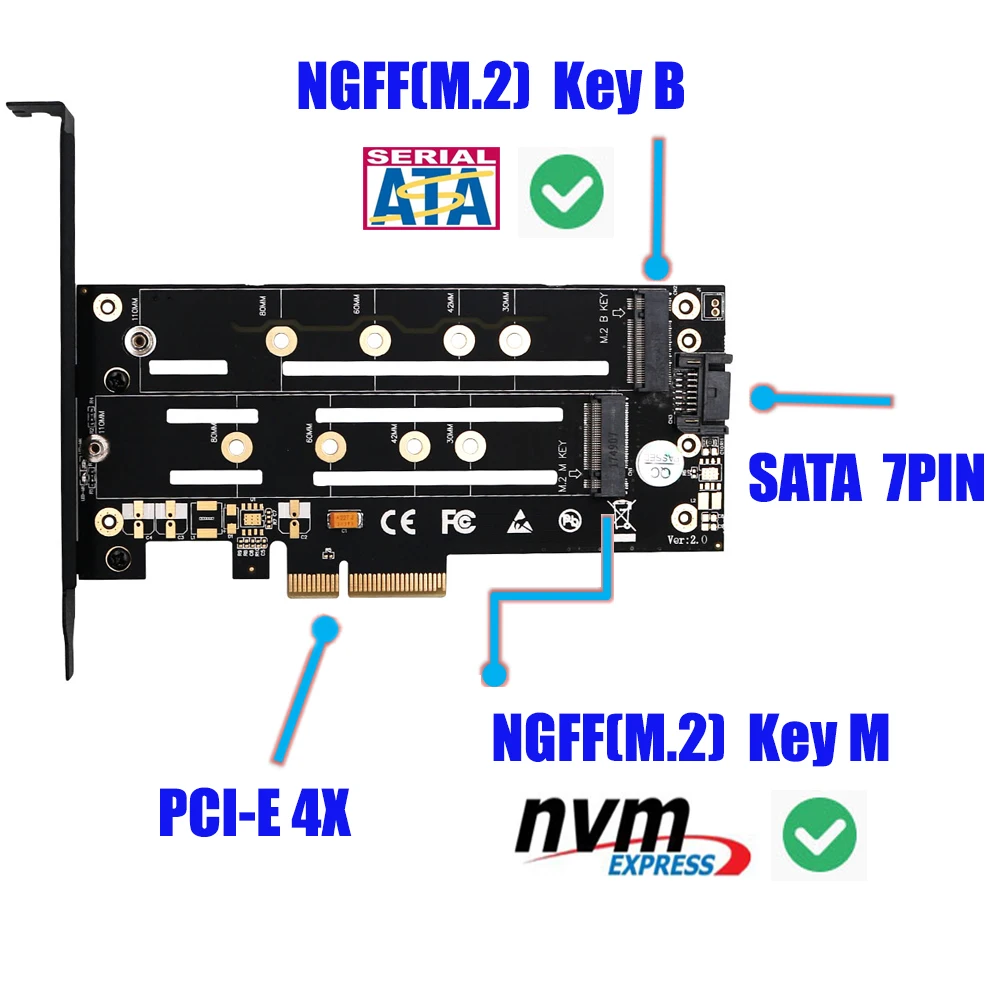 Comprar Adaptador M.2 NVMe SSD PCIE M Key SATA B Key M.2 NGFF PCIE a M2, controlador PCI Express 3,0 con soporte de perfil bajo, disipador térmico