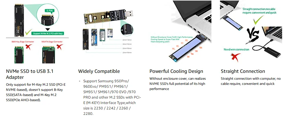 -Compatible con Samsung 970 series / 960 series / WD Black / Intel / Crucial Series M.2 NVME SSD