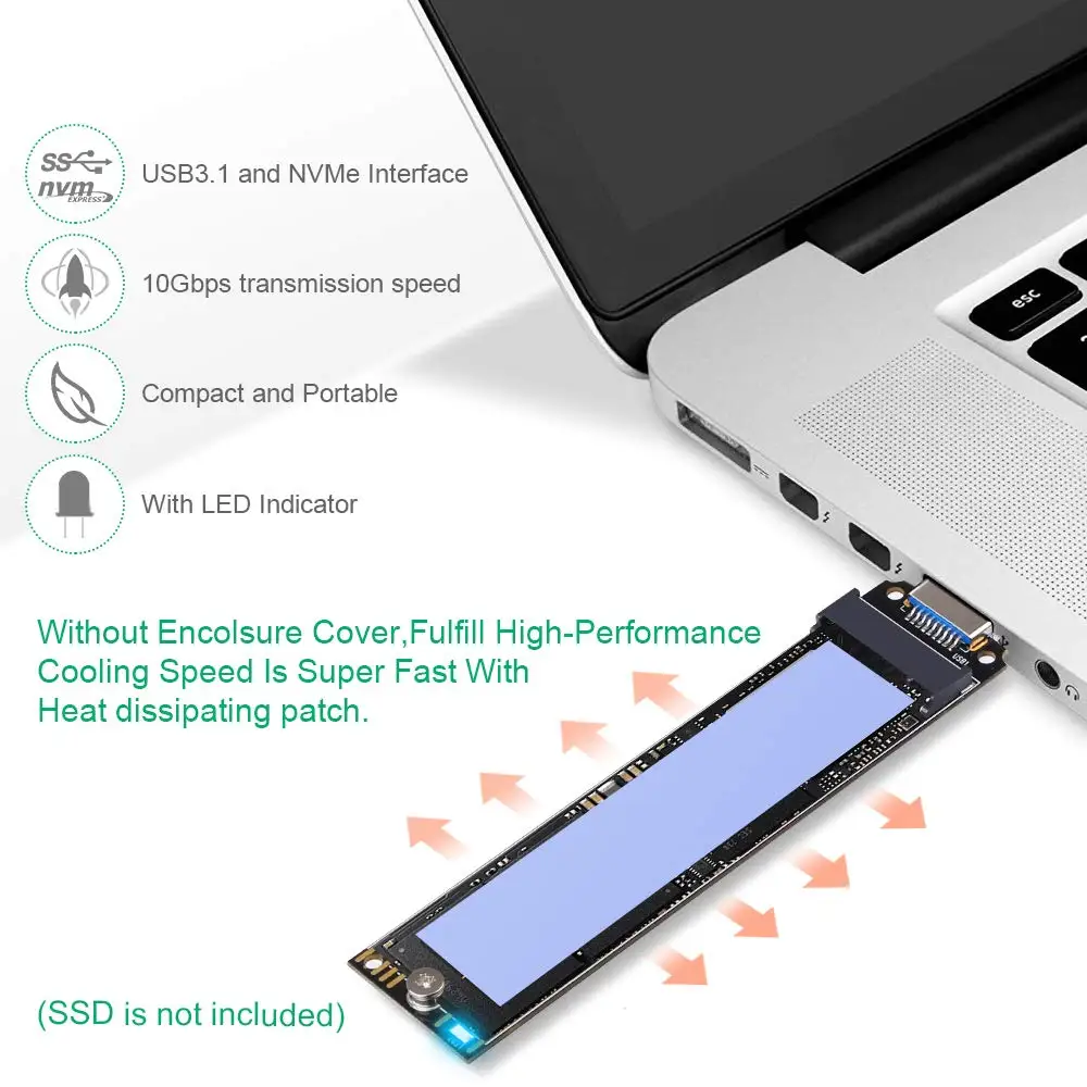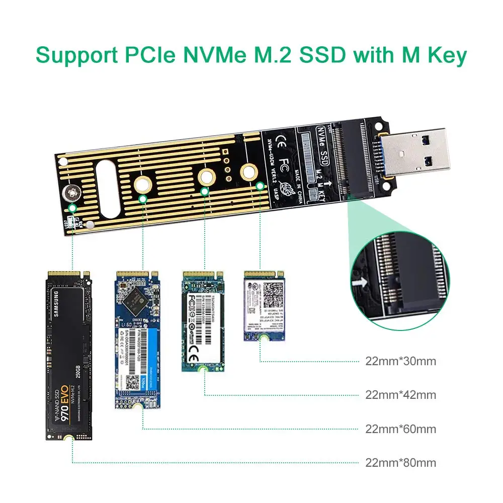 Comprar Adaptador M.2 NVME USB 3,1, m-key M.2 NGFF NVME, lector de tarjetas USB 3,1 Gen 2, Chip de puente con 10 gbps para 2242/2260/2280
