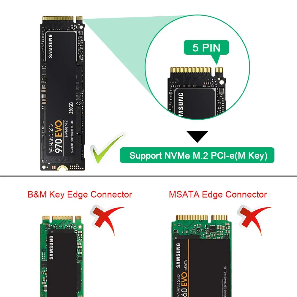 -Compatible con Samsung 970 series / 960 series / WD Black / Intel / Crucial Series M.2 NVME SSD